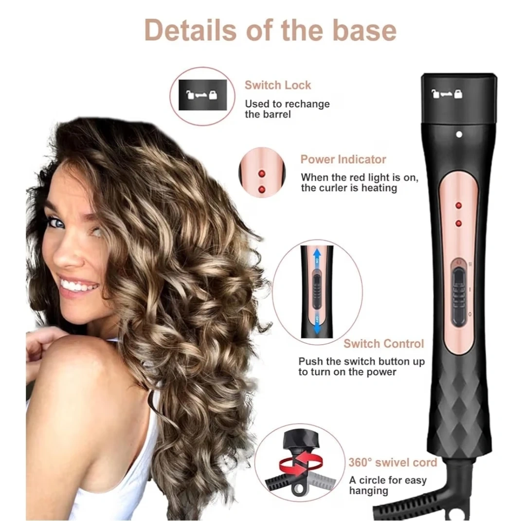 Designed with interchangeable ceramic barrels, this styling kit allows you to effortlessly create everything from tight spiral curls to soft beach waves, making it perfect for both short and long hair.