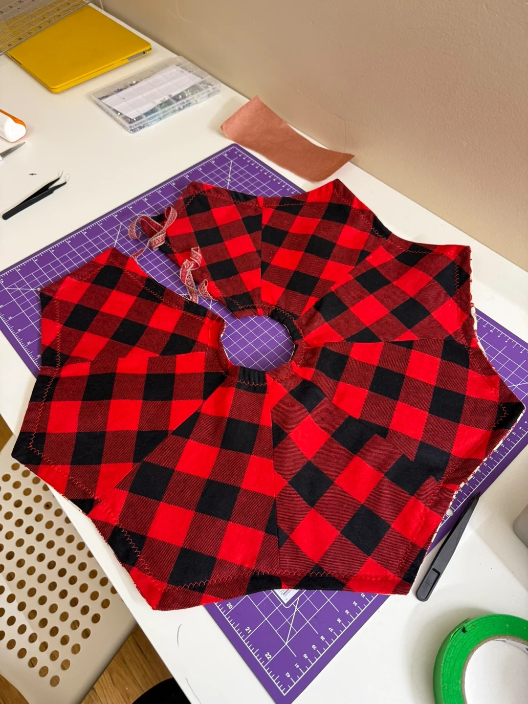 Check out this handmade Christmas tree skirt! It features a classic red and black plaid pattern on one side and a festive holiday print on the other. It's perfect for adding a touch of cozy charm to your Christmas decor this year