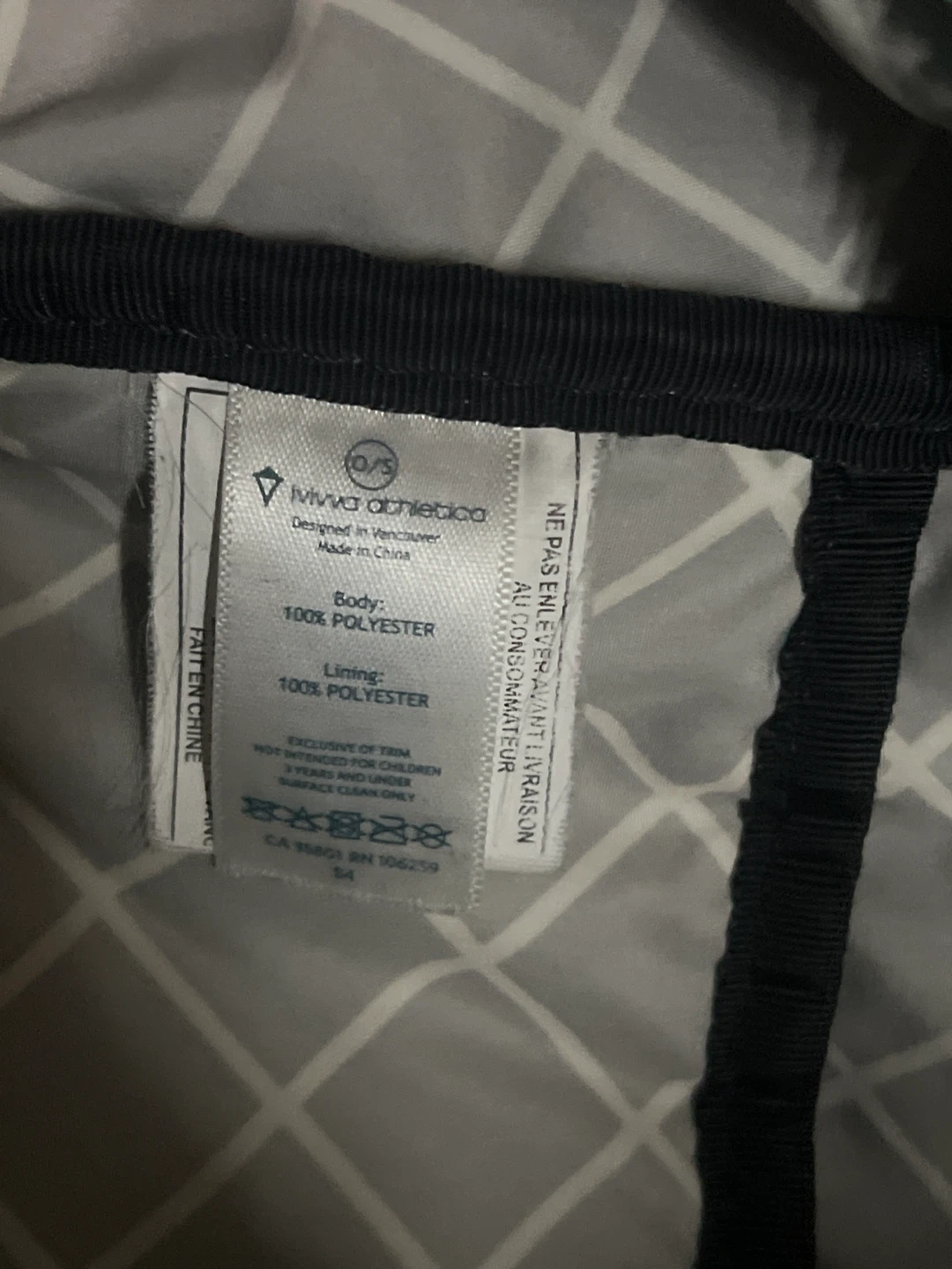This ivivva Athletica backpack is made of 100% polyester for both the body and lining. It has multiple compartments inside for organization. This bag's design is suitable for carrying everyday essentials.