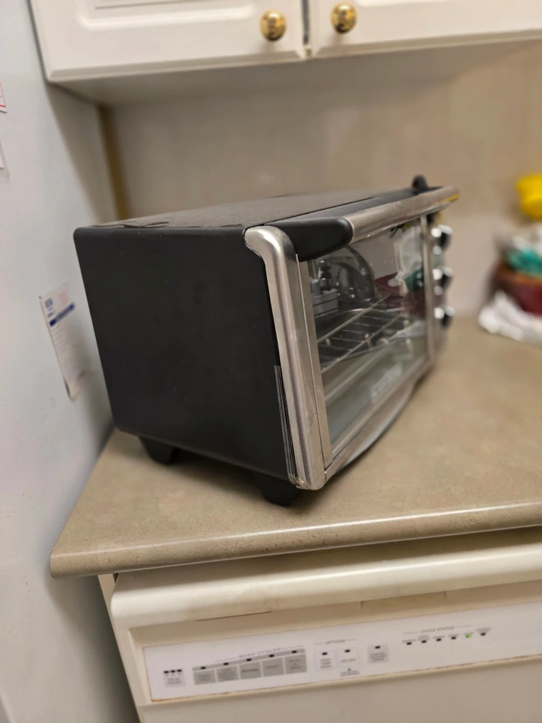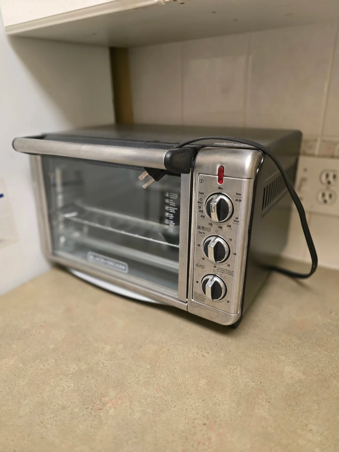 This BLACK+DECKER toaster oven toasts, bakes, and broils. It has a 15-minute timer and temperature control. It's great for quick snacks and meals! Used a few times only. Very clean.