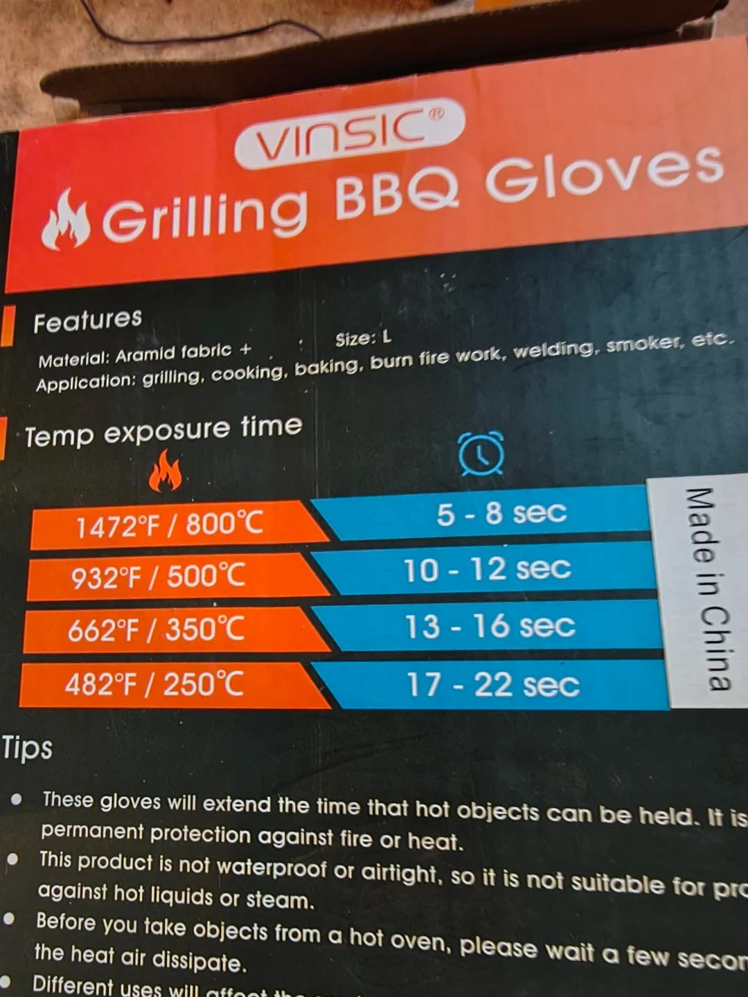Vinsic Grilling BBQ Gloves - Size L