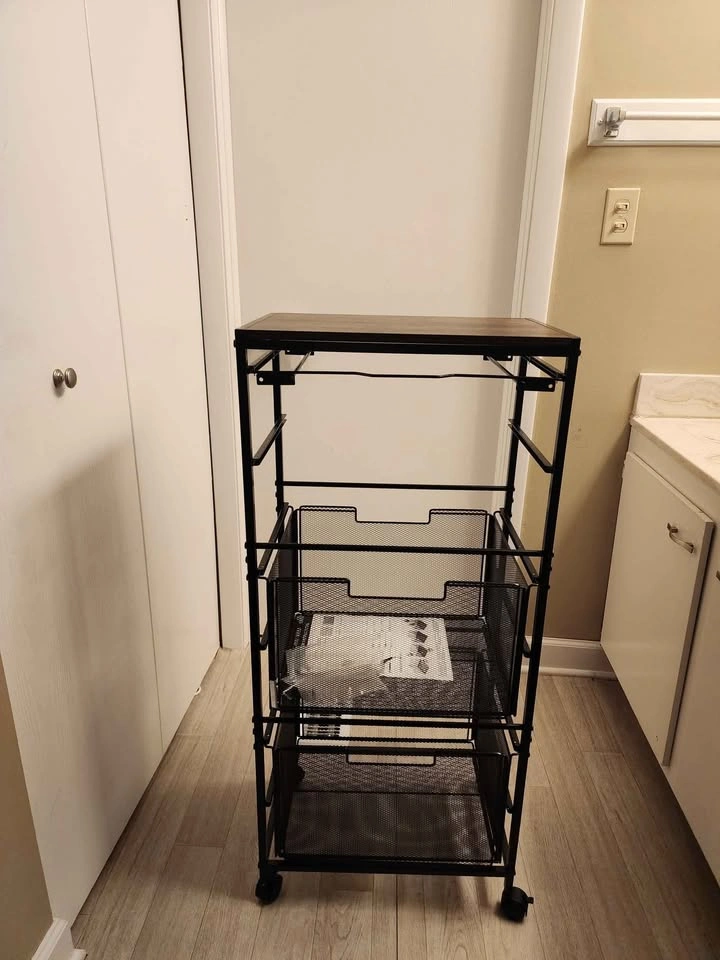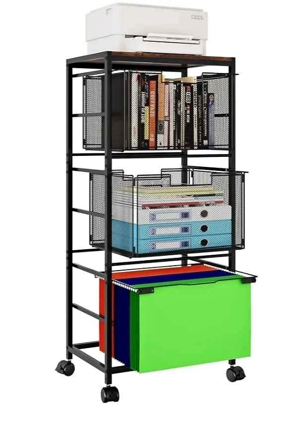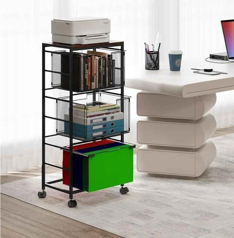 Hanging File Folder Organizer - 3 Tier Rolling Storage Drawer Cart with Wheels, Mobile Small Printer Stand for Home Office, Black