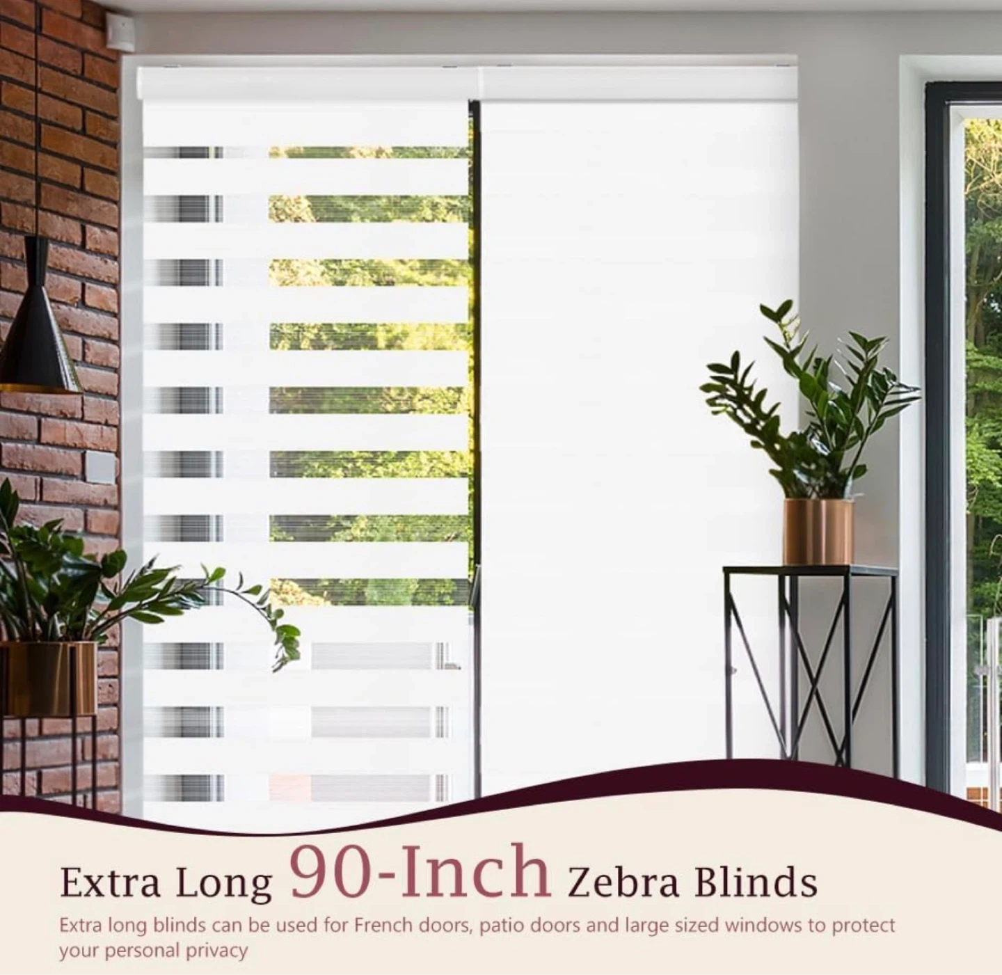 NEW White Cordless Zebra Blinds, 62”W x 90”H