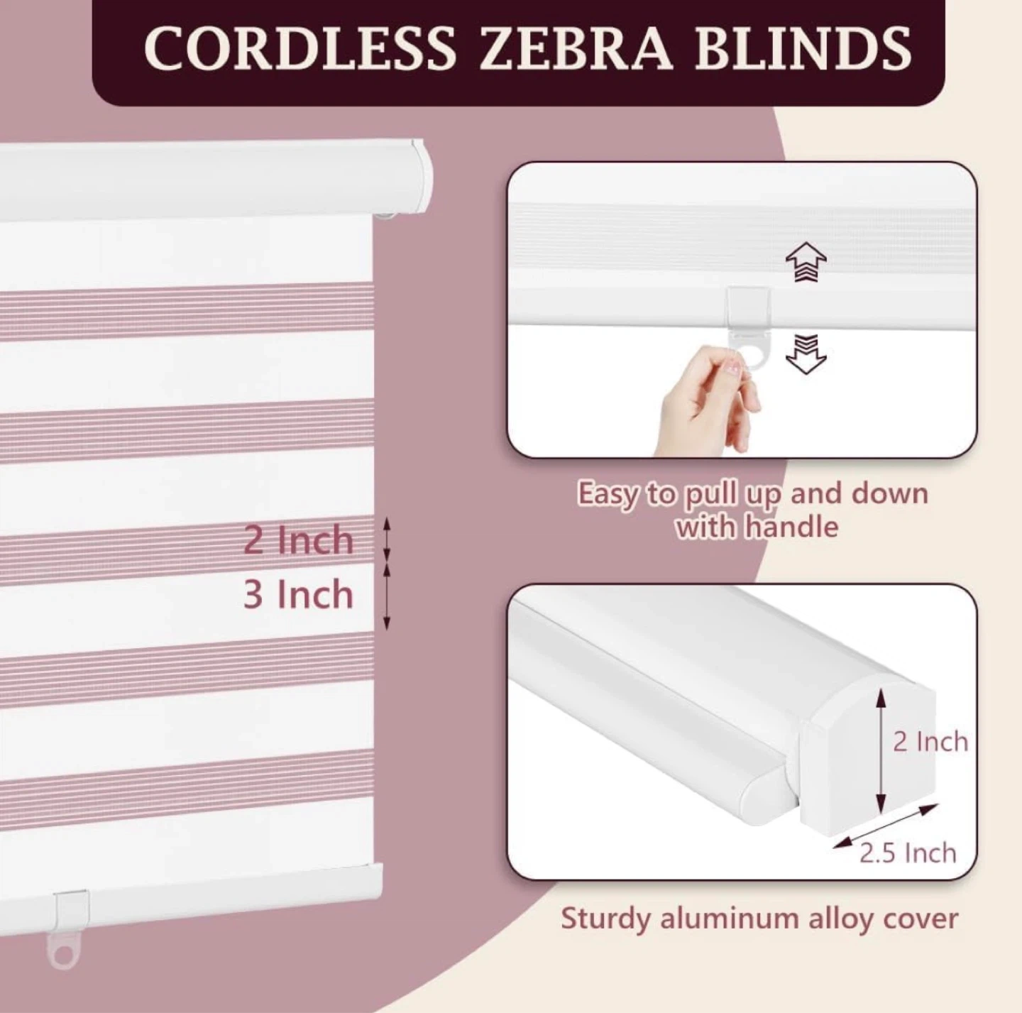 NEW White Cordless Zebra Blinds, 62”W x 90”H