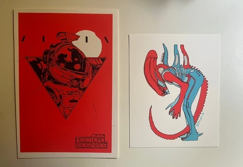 2 handbills by Tyler Stout: Nostromo and Alien. Mint condition. Will be shipped flat. All sales final, no returns or refunds.