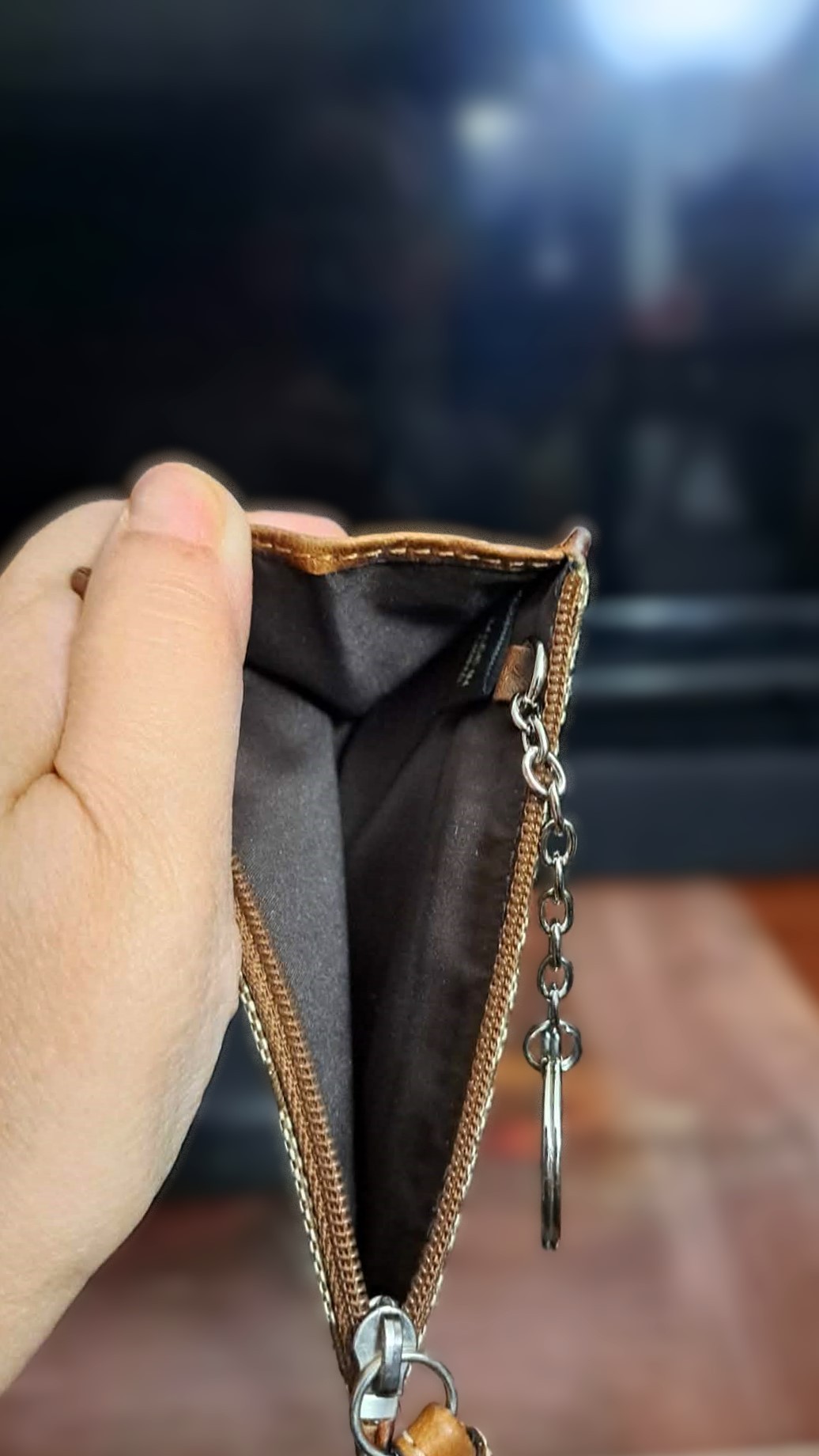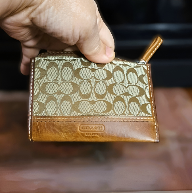 Original Price $90. VTG Coach Est.1941 Signature Mini Skinny Canvas Leather Coin Card Purse Like New. Vintage Coach Est.1941 Signature Mini Skinny Sable Brown Canvas Leather Coin Purse. Add a touch of classic luxury to your everyday essentials with this authentic Coach Signature Mini Skinny Card Case. This versatile accessory functions as a slim wallet, coin purse, and keychain all in one.