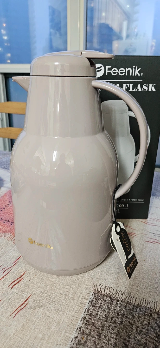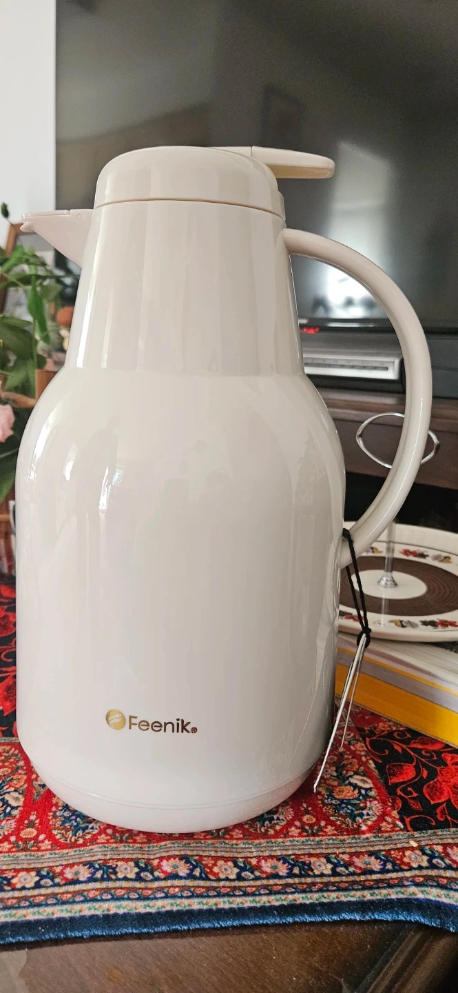 Feenik thermal carafe flask. Holds 1.5L. Beige colour. Keep your beverages hot or cold for hours!