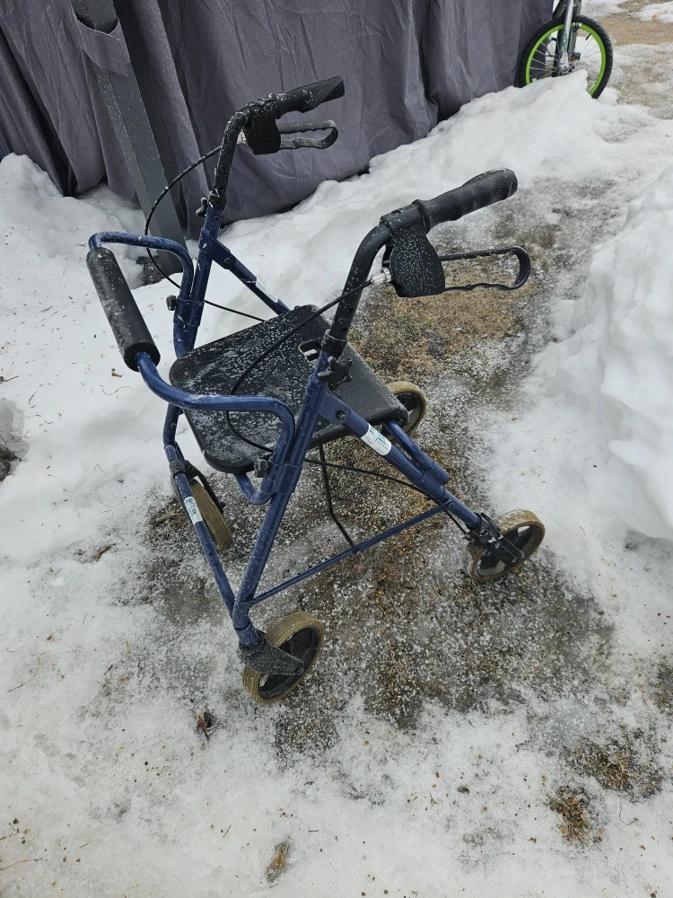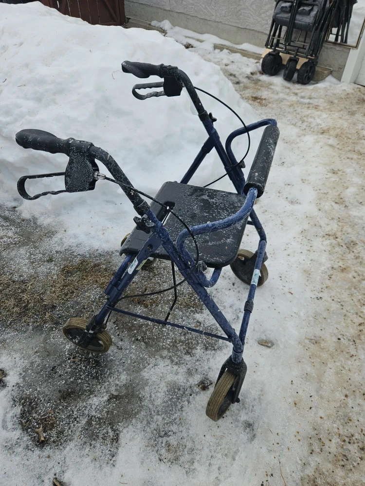 I am pleased to offer a walker with a seat that is in good working condition. This item has been well-maintained and is ready for its next owner. The seat provides a convenient resting spot for added comfort and support. All functionalities of the walker are working perfectly. This would be a reliable addition for anyone in need of assistance with mobility.