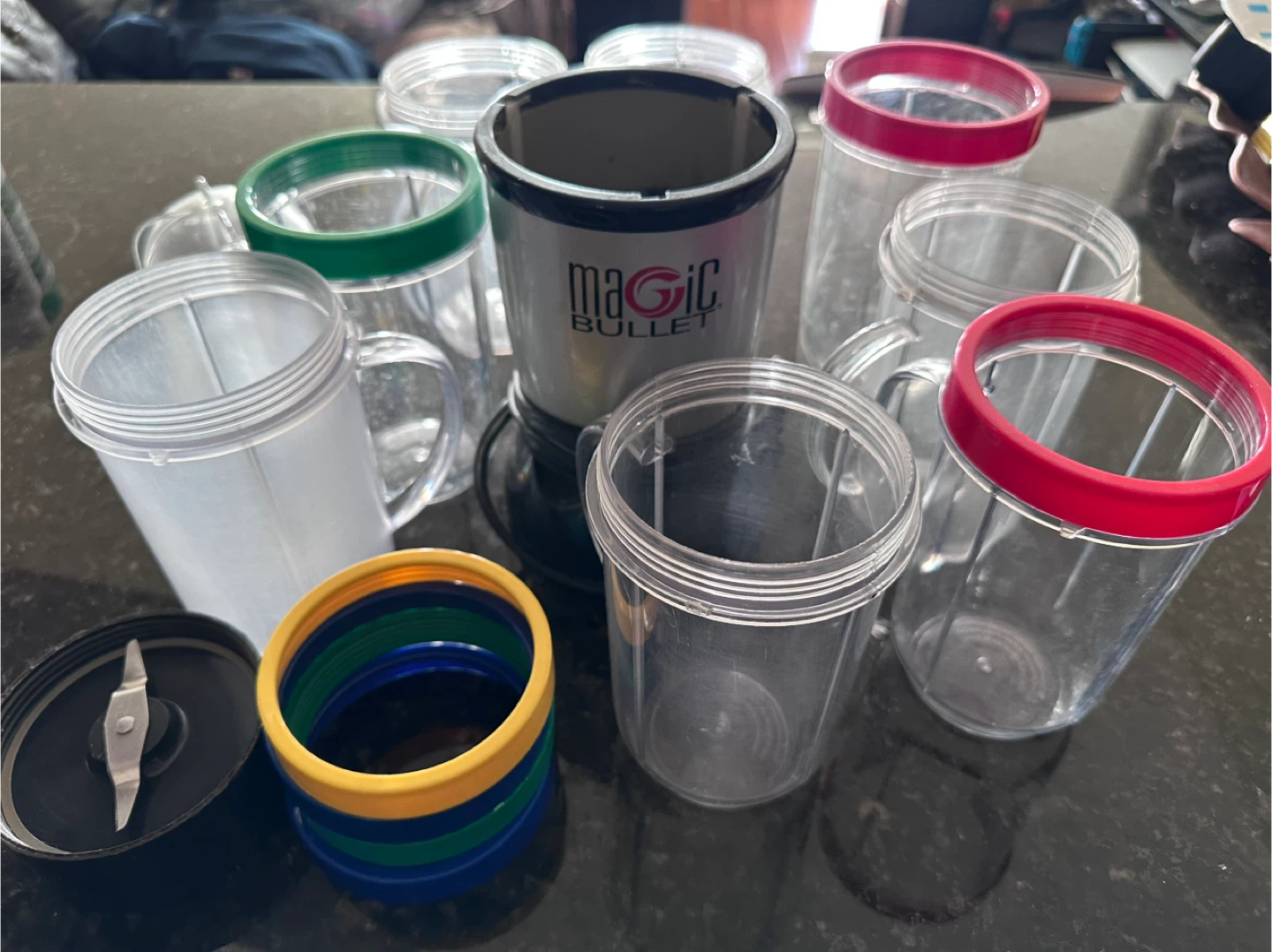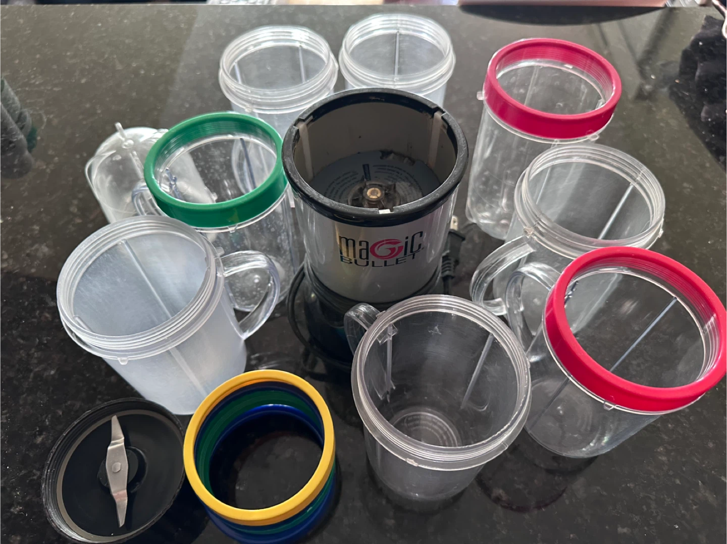 Selling a Magic Bullet blender. It comes with all the cups and accessories you see in the photos! It's perfect for making smoothies and other blended drinks. This set has been gently used and is ready for a new home