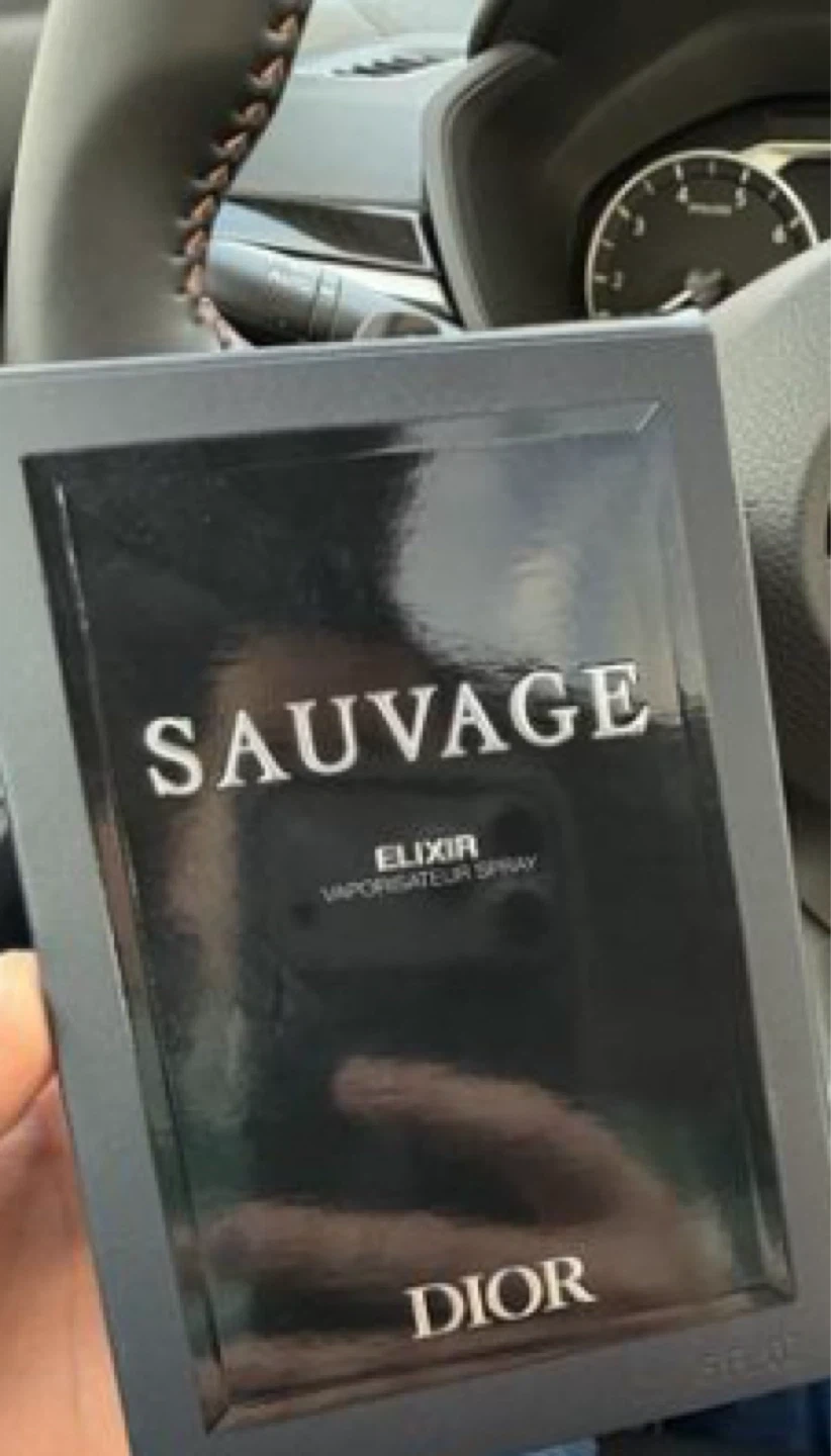 This is Dior Sauvage Elixir, an intense concentrated perfume for men. It's a rich and spicy scent with notes of cinnamon, cardamom, and licorice. The bottle is 60ml.