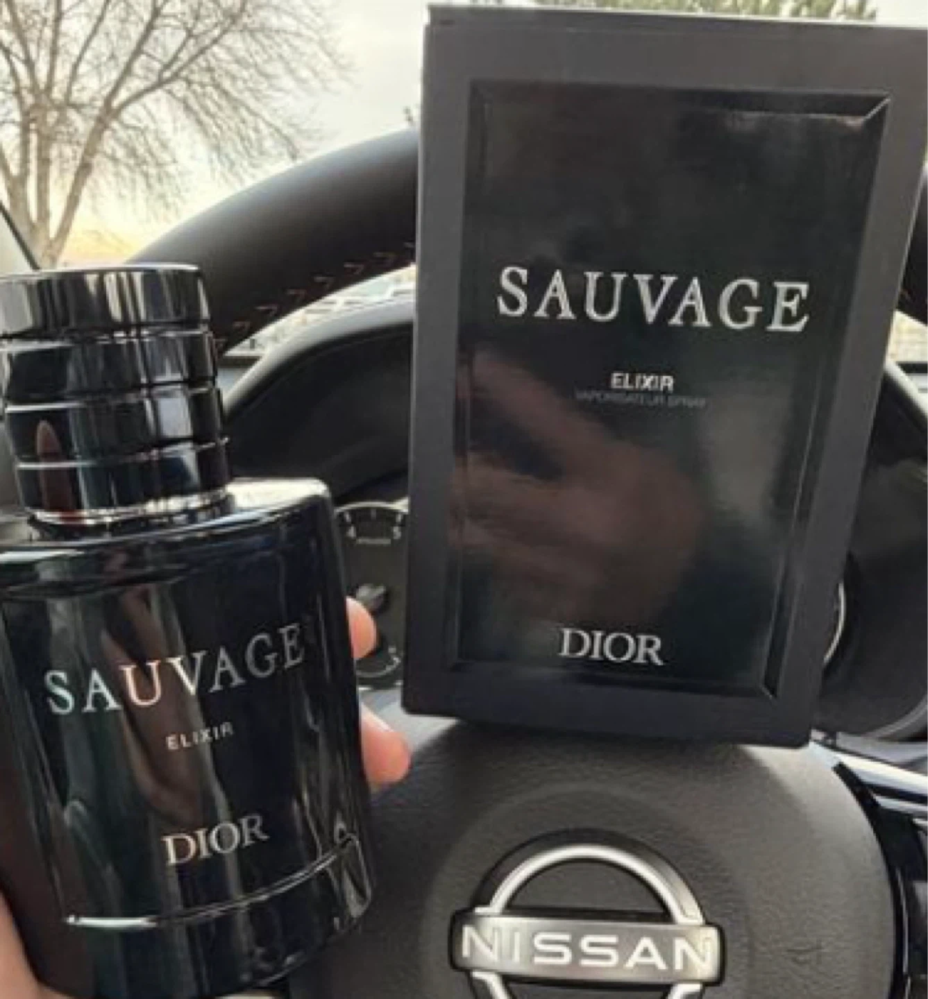 This is Dior Sauvage Elixir, an intense concentrated perfume for men. It's a rich and spicy scent with notes of cinnamon, cardamom, and licorice. The bottle is 60ml.