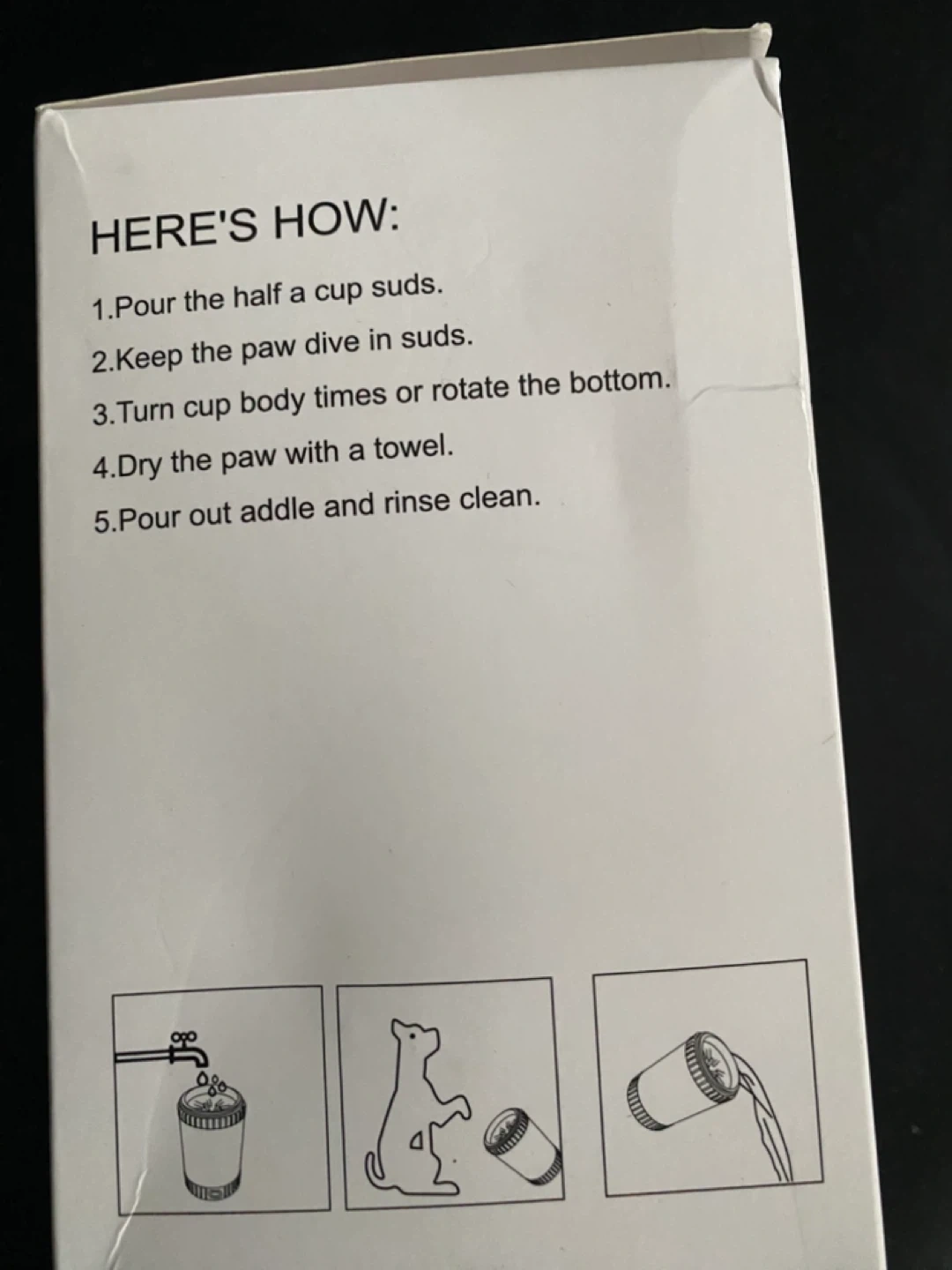 Keep your dog's paws clean after walks! This cup is designed for easy paw washing. It's simple to use: add water and soap, dip the paw, twist, and dry. Great for keeping your home tidy.