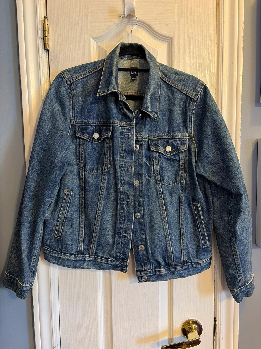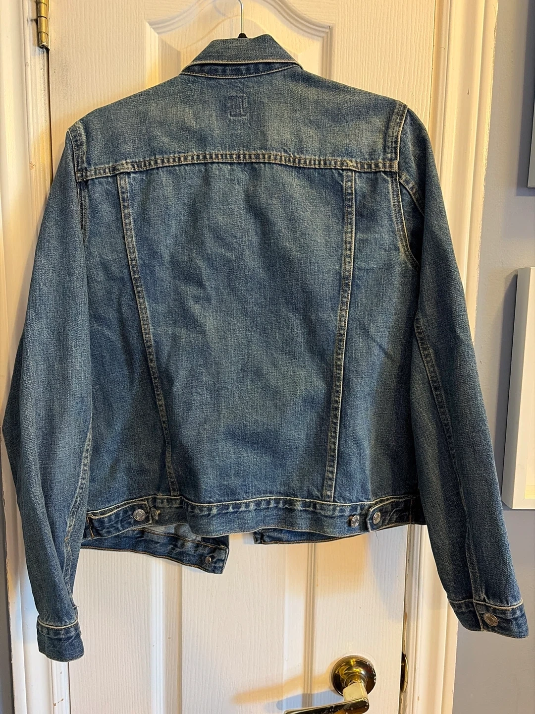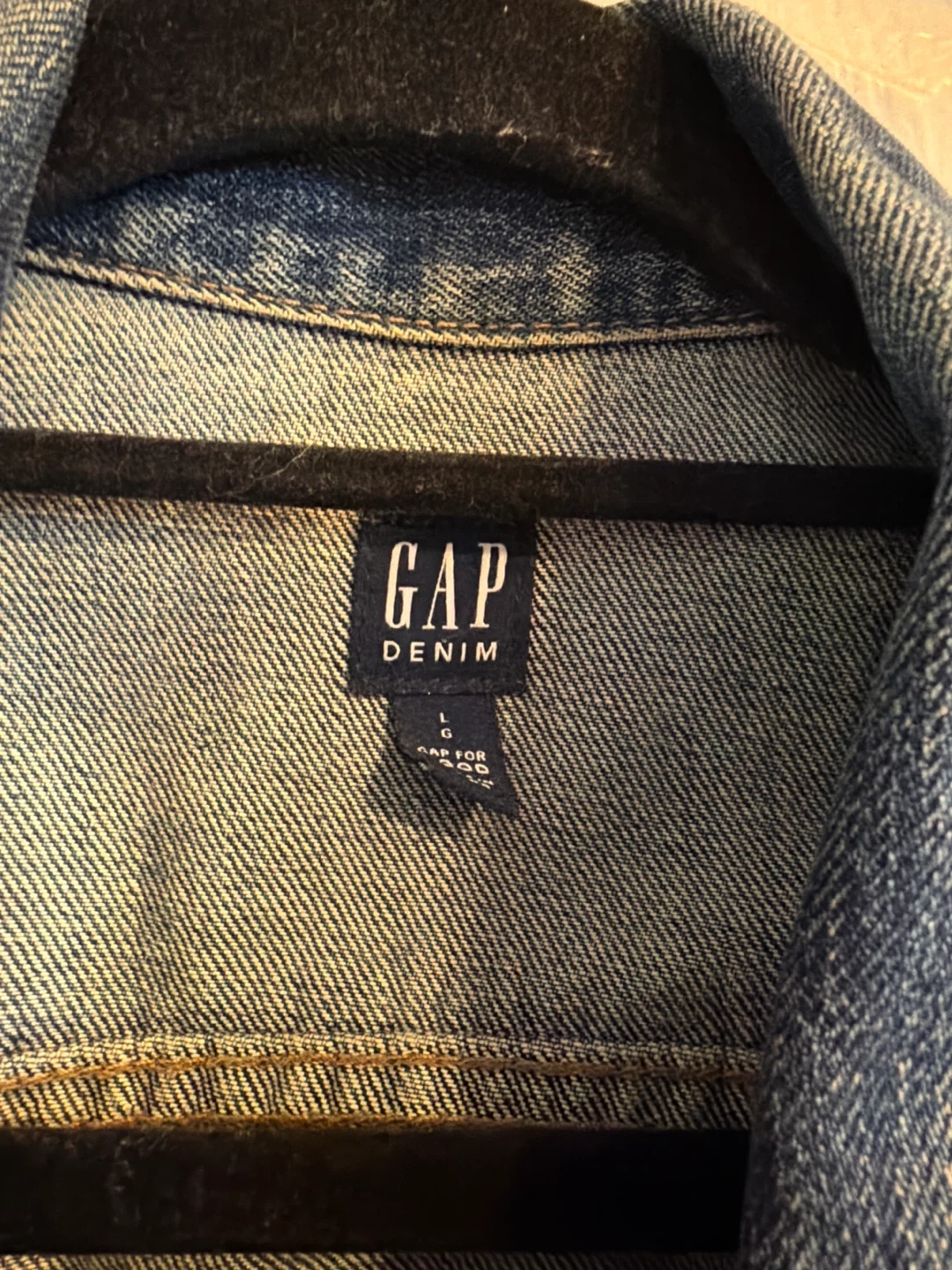 Classic blue denim jacket from GAP. It's a size Large and made of durable denim. Great casual spring jacket.