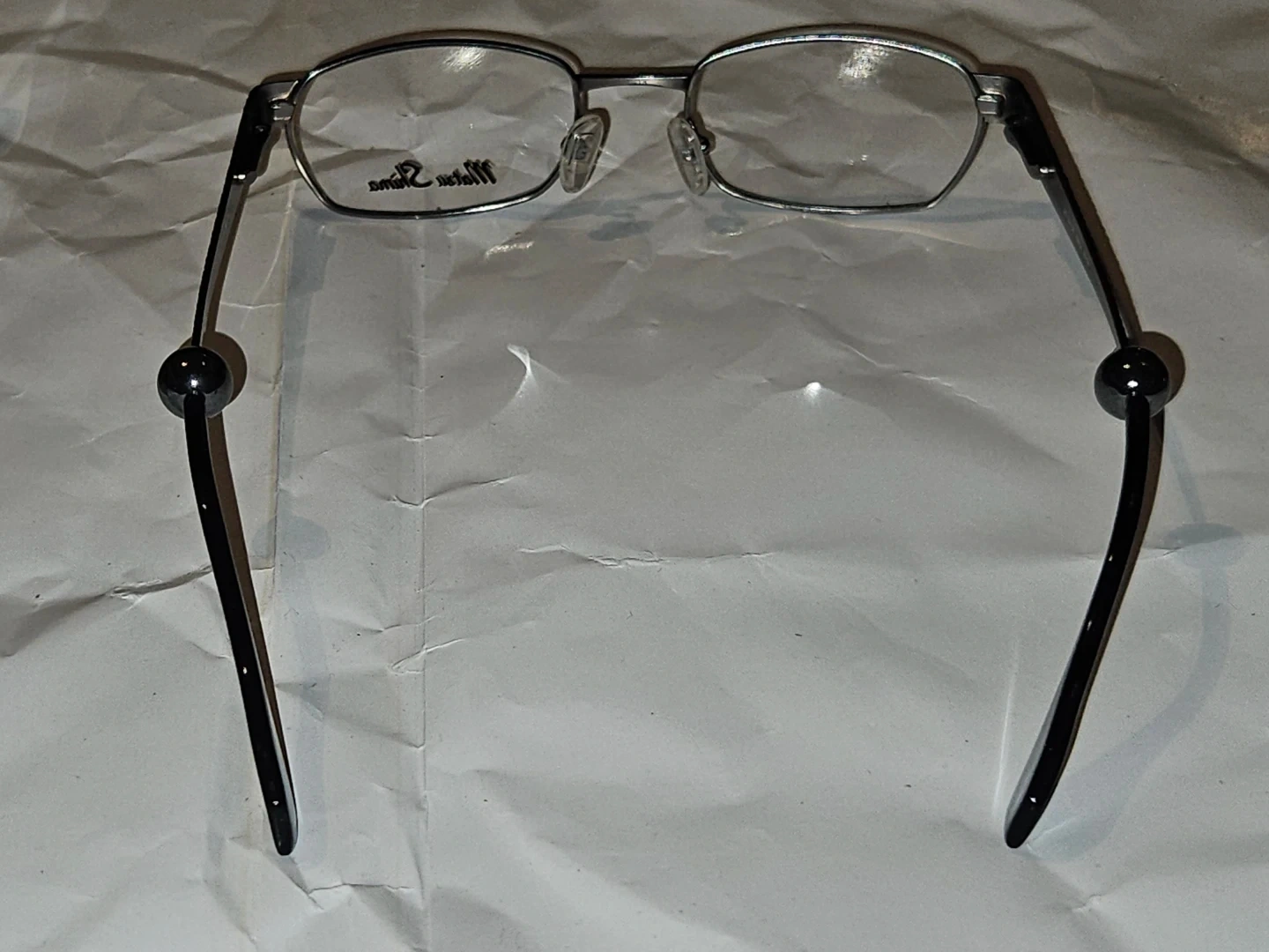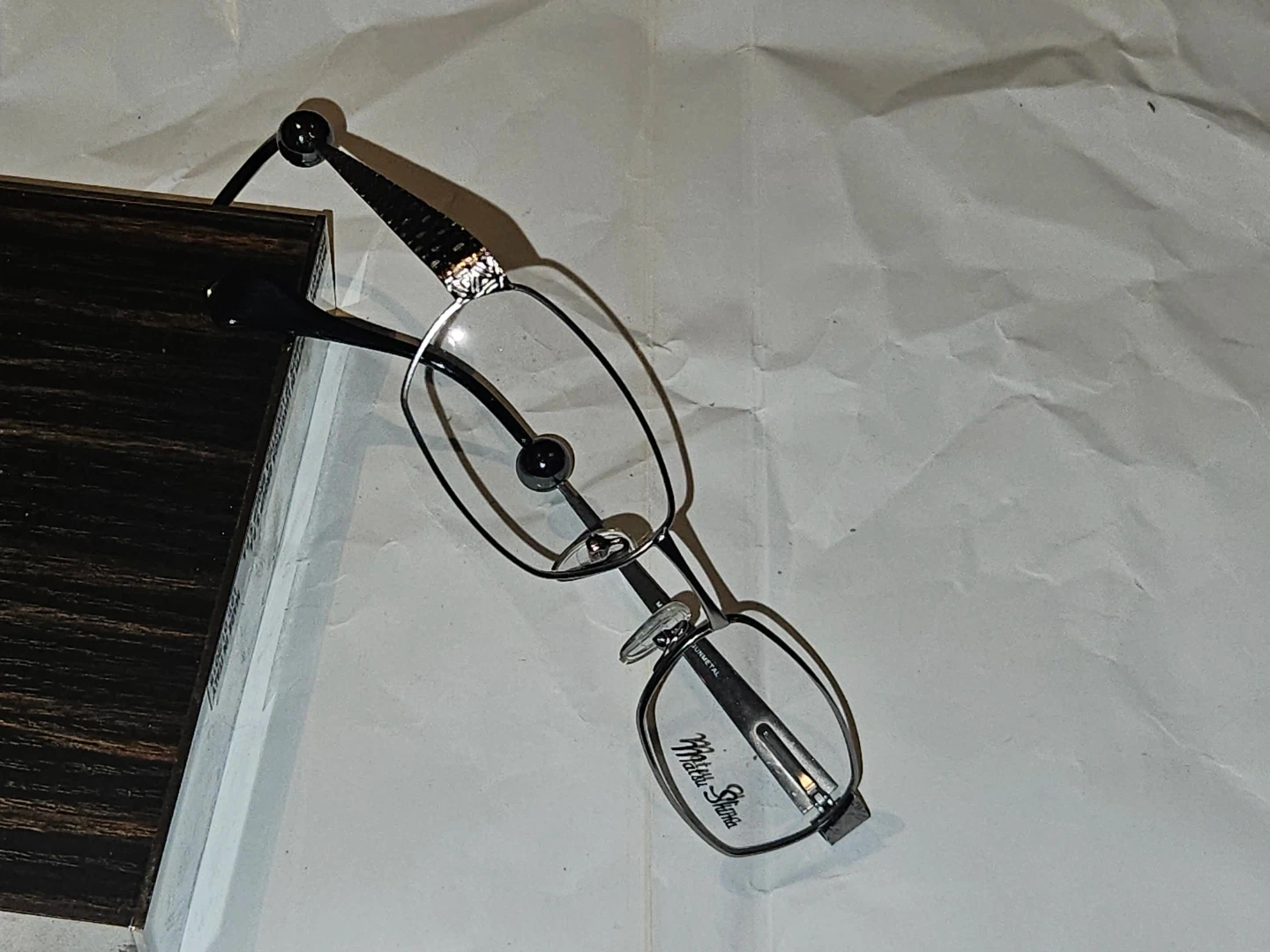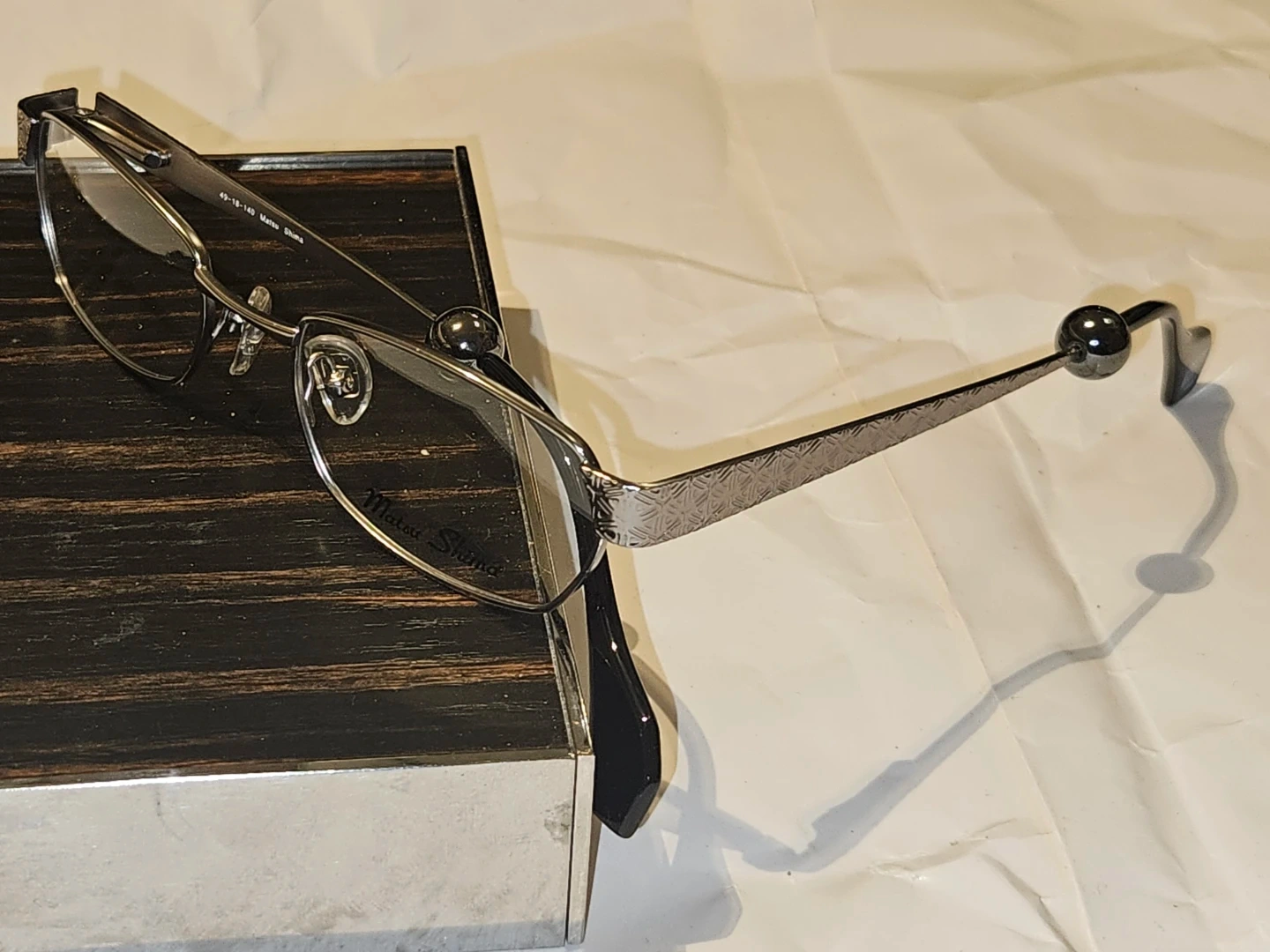 Matsu Shima eyeglasses in a gunmetal finish. Model MS 1826. These glasses offer a sleek and modern design. They're made with durable metal and plastic temple tips components.