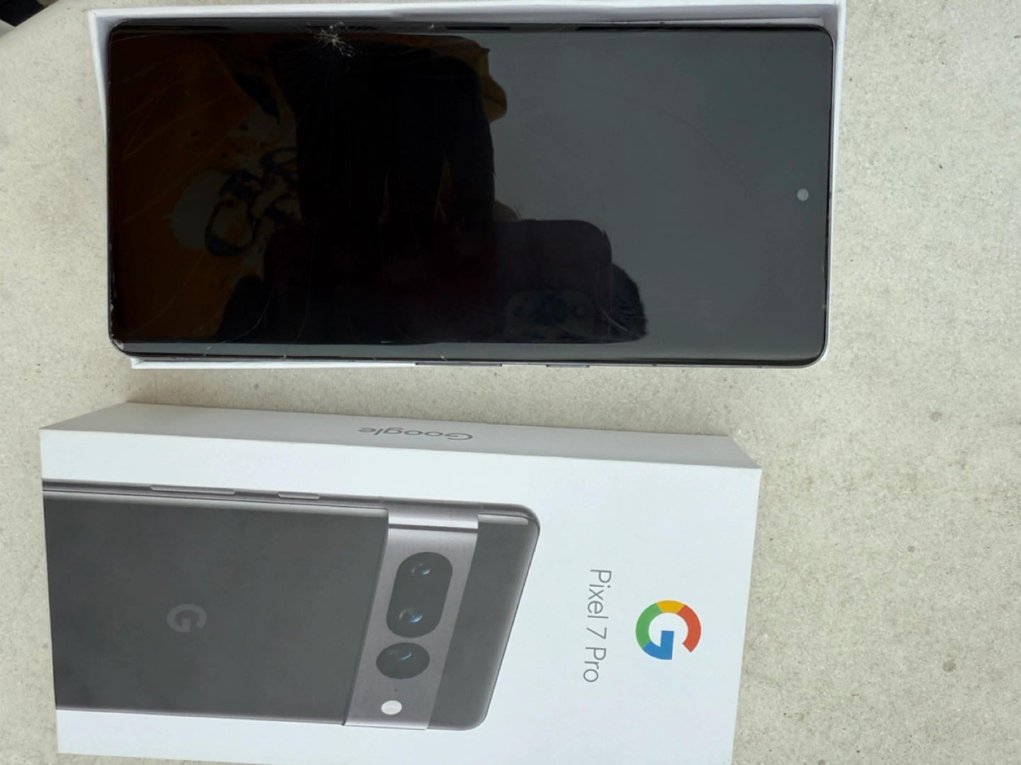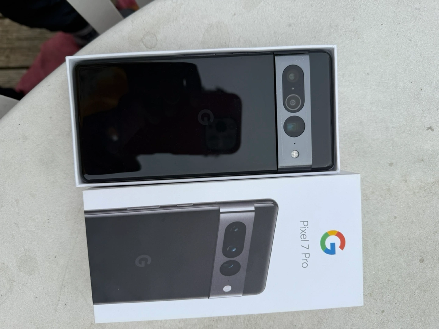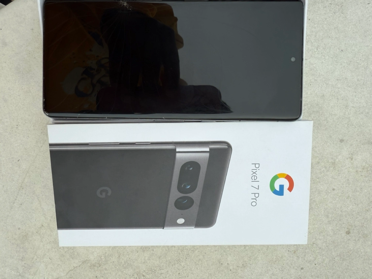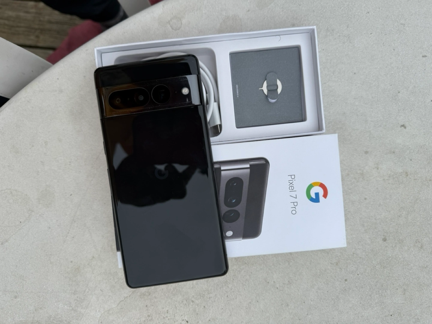 Google Pixel 7 Pro smartphone. Black colour. Includes original box and accessories. Minor cosmetic wear.