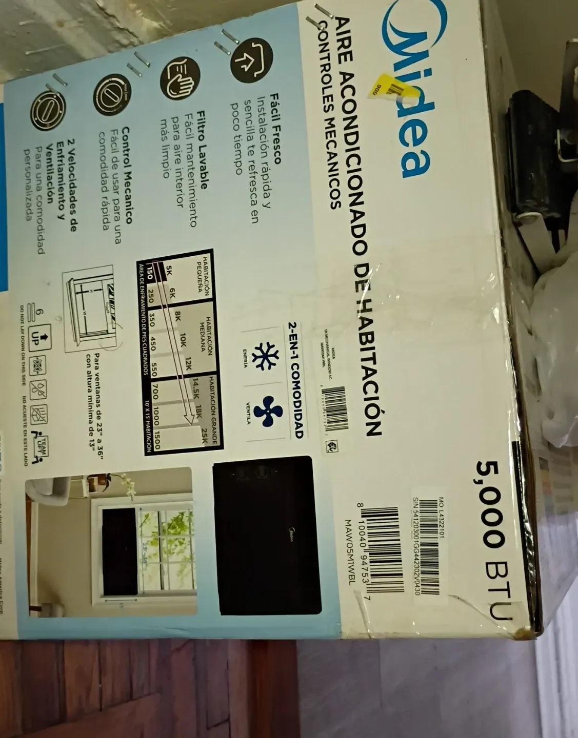 This Midea window air conditioner offers 5,000 BTU cooling power. It features mechanical controls for easy operation and two speeds for cooling and ventilation. The washable filter provides simple maintenance for cleaner indoor air.