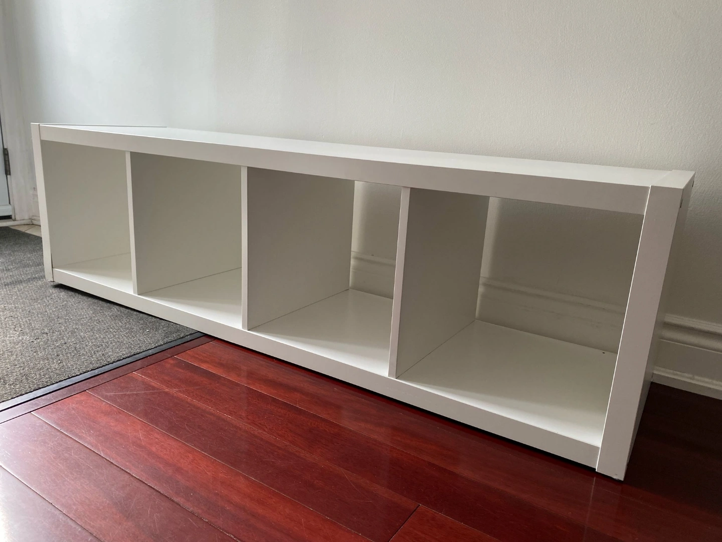 Ikea - Kalax shelves - Four-cube organizer. Great for entryway storage. Minor cosmetic damage on edges. White finish. Good condition otherwise.
