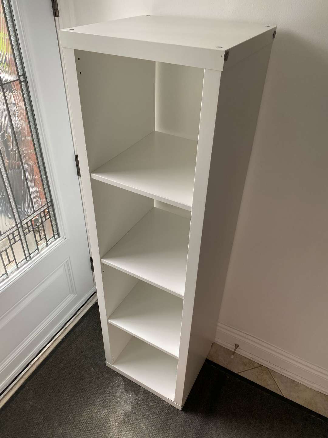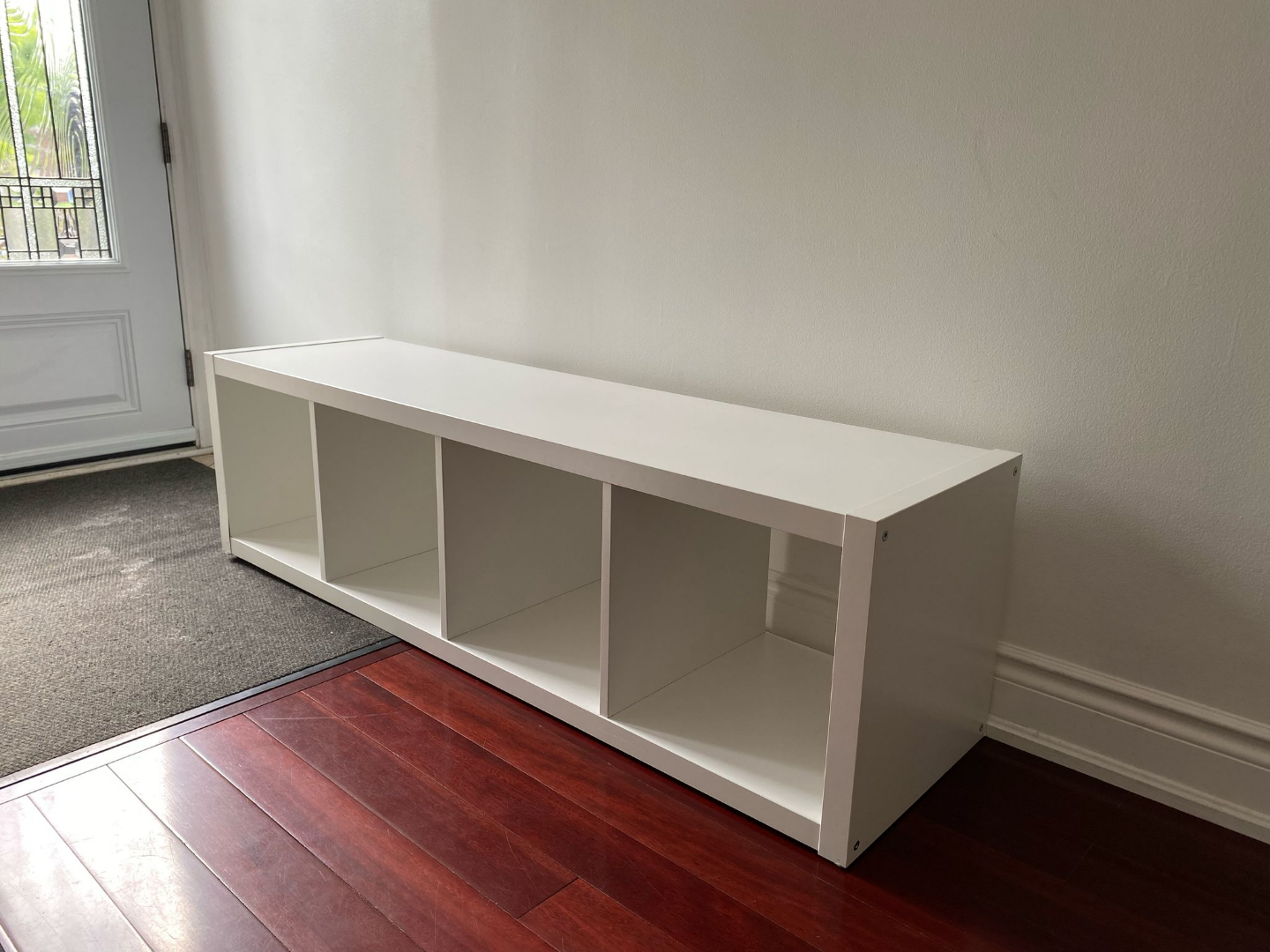 Ikea - Kalax shelves - Four-cube organizer. Great for entryway storage. Minor cosmetic damage on edges. White finish. Good condition otherwise.