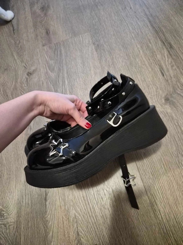 Buy & SellMary Jane Star ShoesMary Jane Star Shoes$10Mary Jane Star Design shoes with Chunky Heel, round toe, and ankle strap. Never worn! Size 7.5WHERE TO MEETCheck LocationView MapSELLERShannonMeadowvale150 reviews0 chats·2 favorites·22 viewsSEND CHAT TO SELLERHi Shannon! I’m interested in your listing.Hi Shannon! I’m interested in your listing.Get the Karrot app to chatSign In to chat