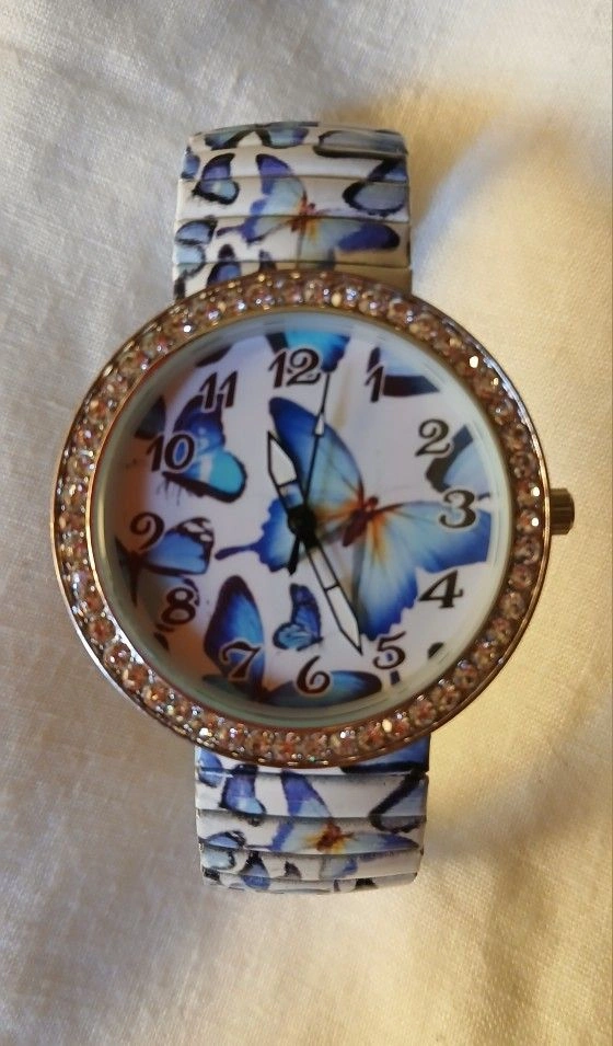 Buy & SellButterfly & Crystal WatchButterfly & Crystal Watch$22Gorgeous bright blue butterflies on face and expandable band. Crystal bezel. Stainless steel back. Battery needed. Features: Gemmed. Material: Stainless steel. Display: Analog.WHERE TO MEETw104 community gardenView MapSELLERverifiedKBUpper West Side16810 reviews0 chats·0 favorites·2 viewsSEND CHAT TO SELLERHi KB! I’m interested in your listing.Hi KB! I’m interested in your listing.Get the Karrot app to chatSign In to chat