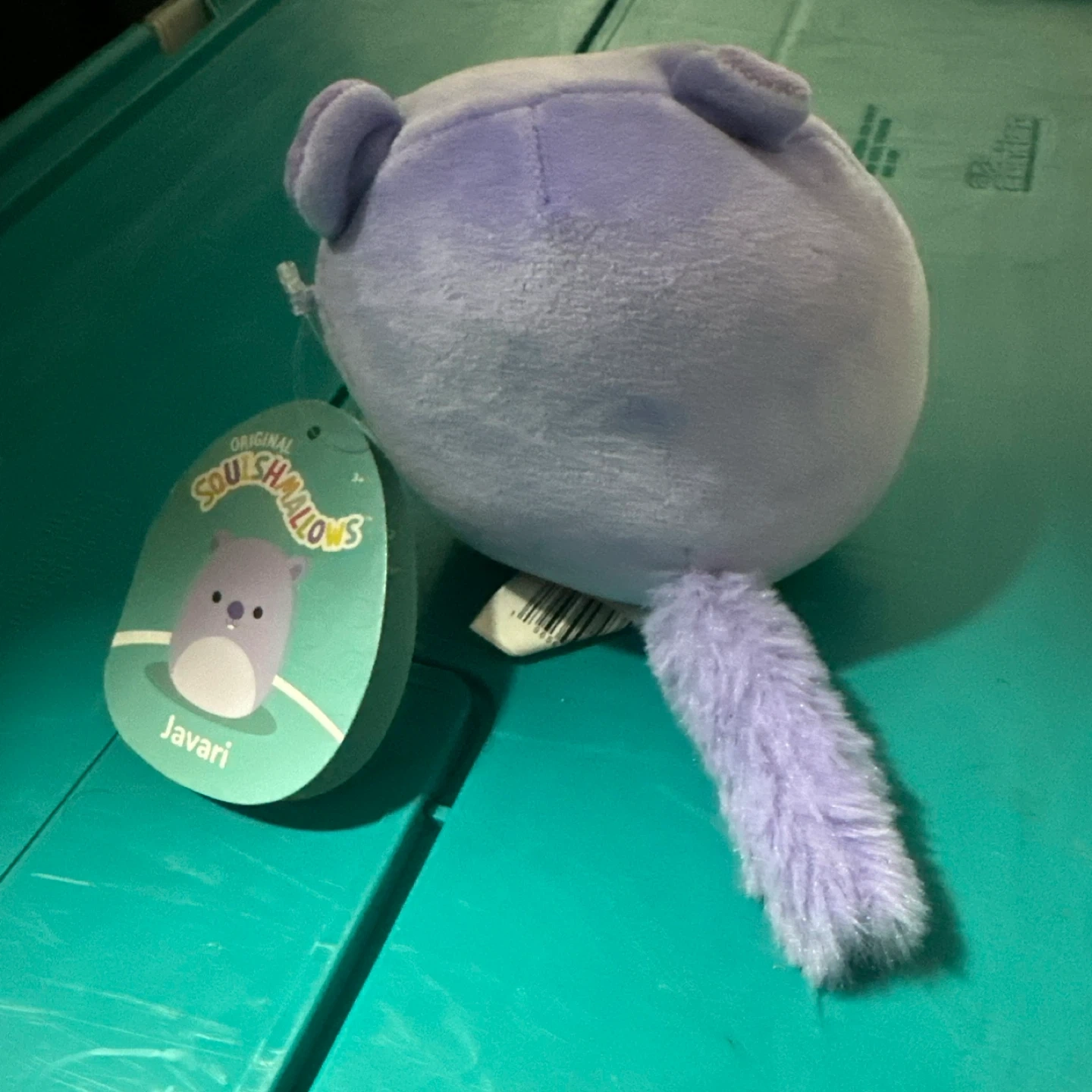 This is a Squishmallows plush toy named Javari. It's lavender colored with a soft, cuddly texture. It's made of polyester fiber.