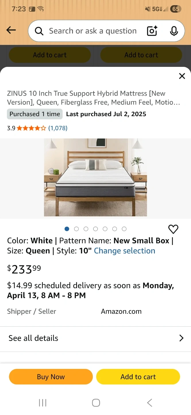 FREE ZINUS 10 Inch Queen Mattress (Pickup Only, Moving)