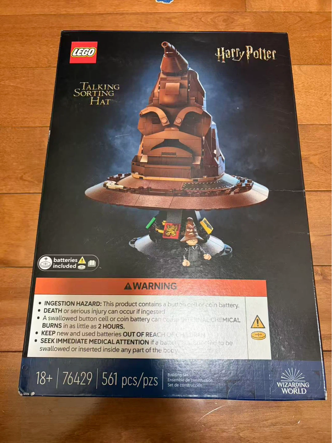 This is the LEGO Harry Potter Talking Sorting Hat building set, featuring 561 pieces. It includes batteries for its talking feature. This set is recommended for ages 18 and up.