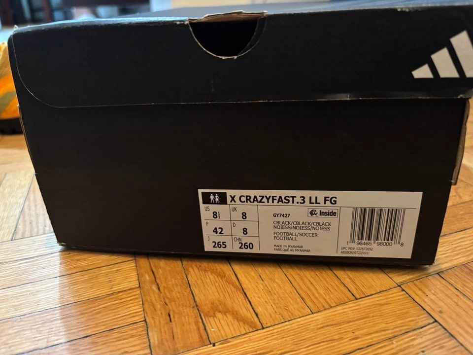 Black Adidas soccer cleats, size 8.5. Used but in excellent condition with no signs of wear. Comes with the original box.