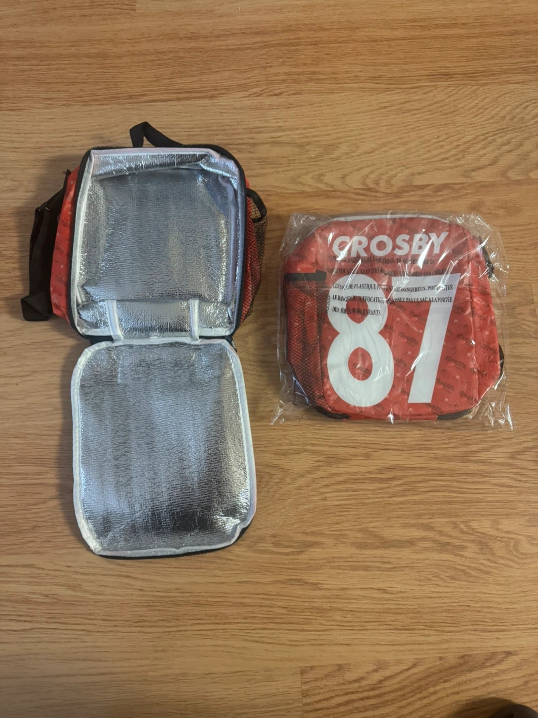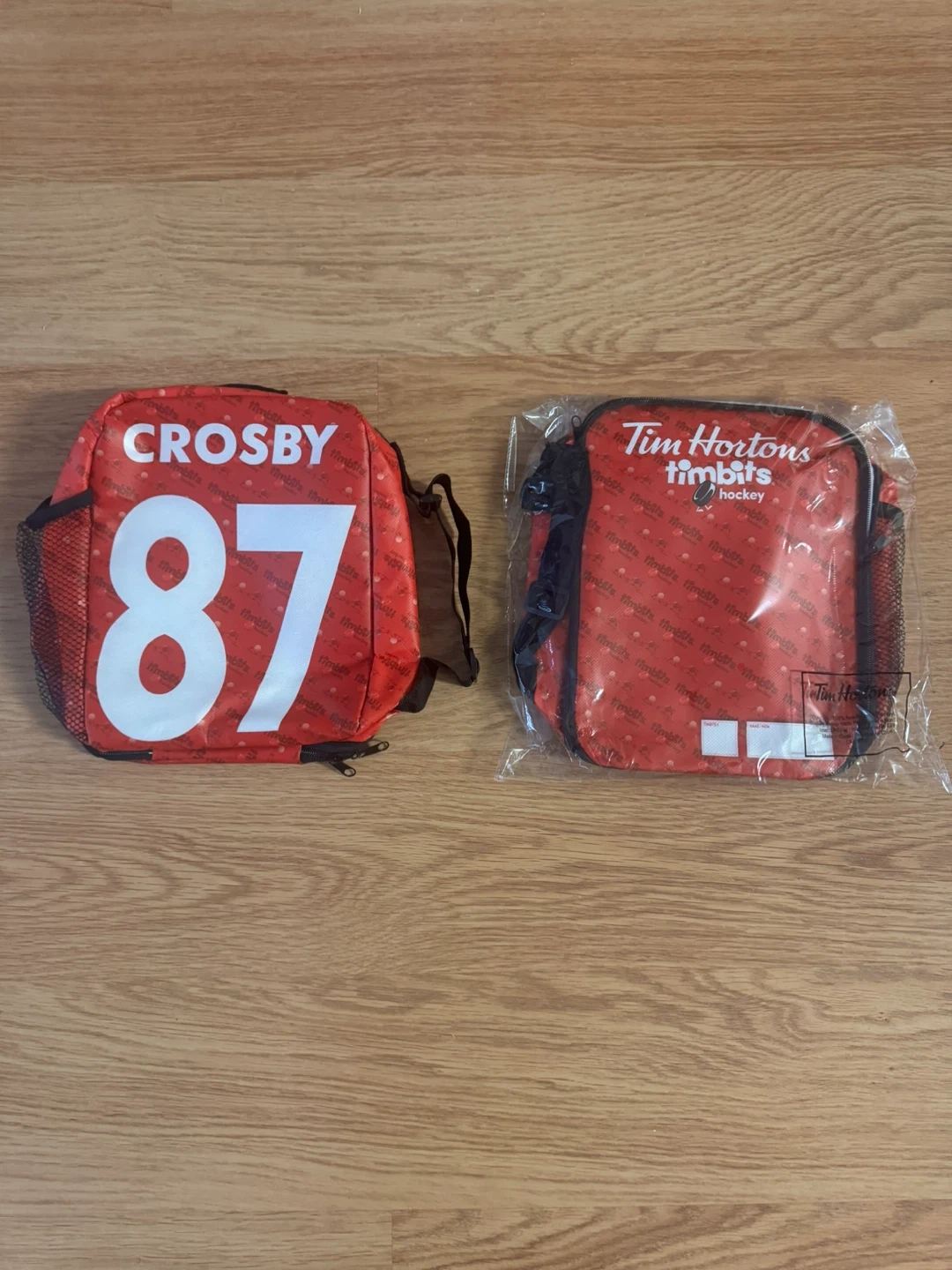 This is a Tim Hortons Timbits Hockey branded lunch bag featuring Crosby and the number 87. It has an insulated interior. It's great for keeping snacks or a lunch cool.