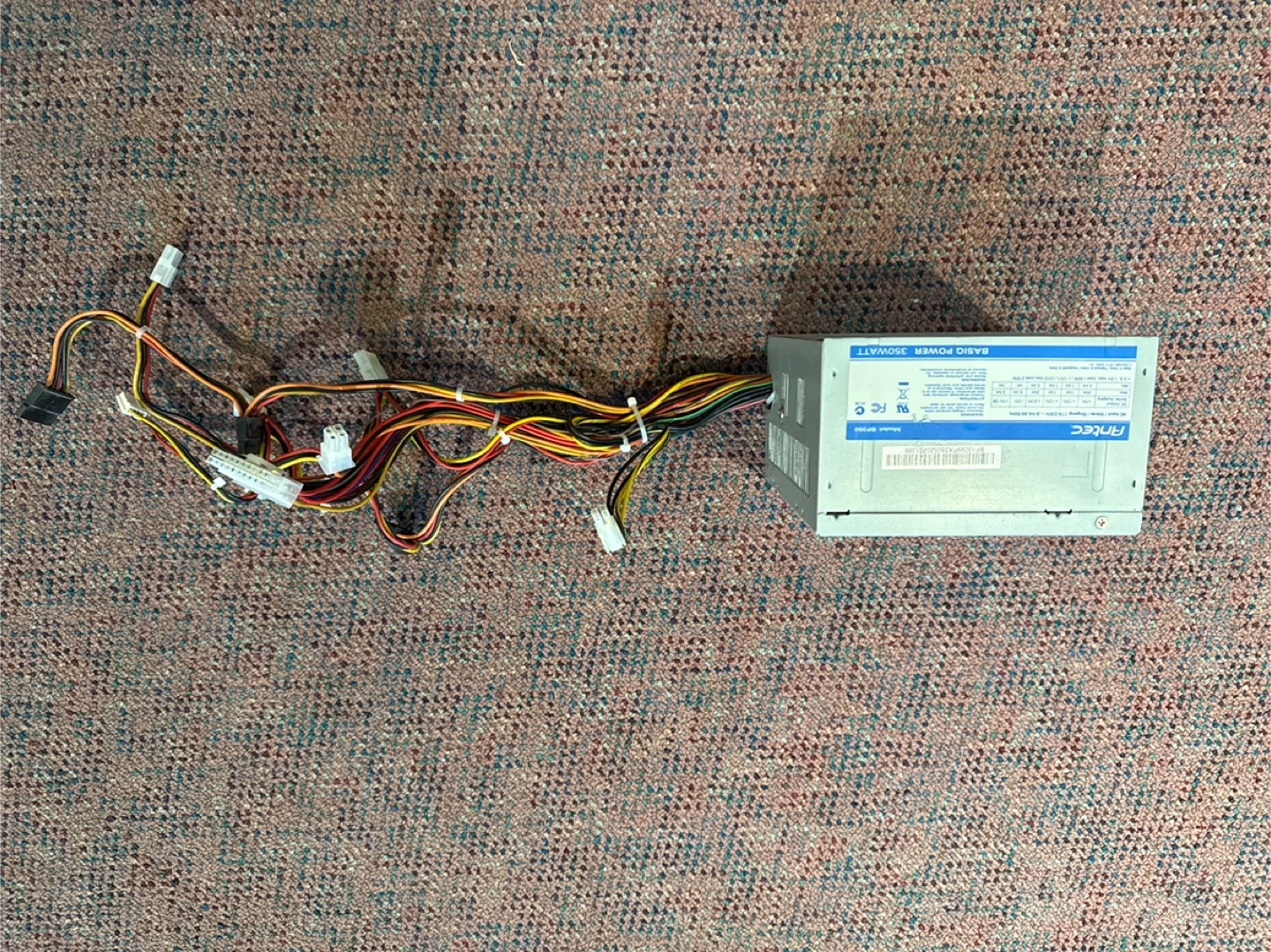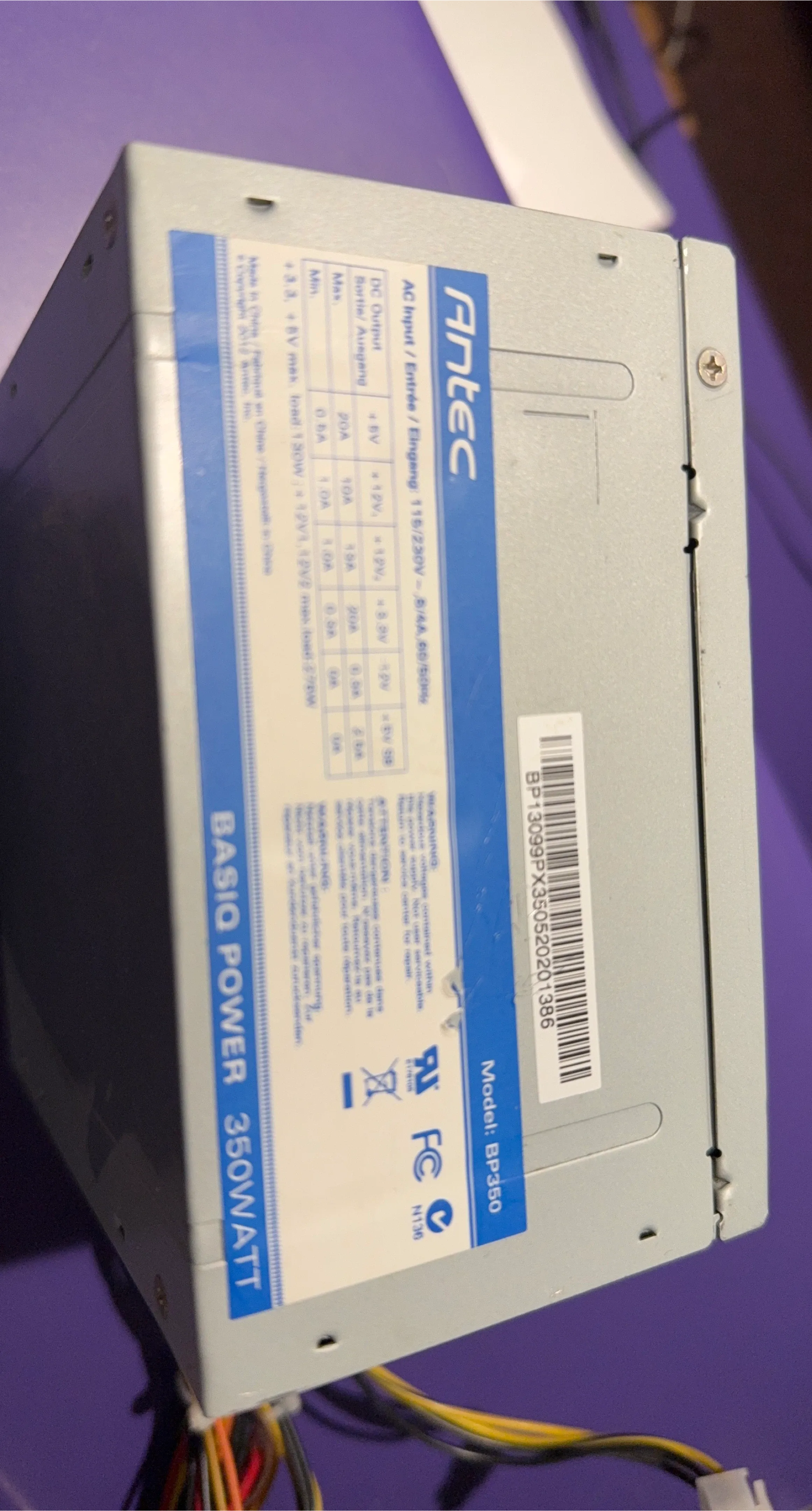 This is an Antec BASIQ POWER 350W power supply unit. It's a reliable component for a computer build. It comes with all necessary cables.