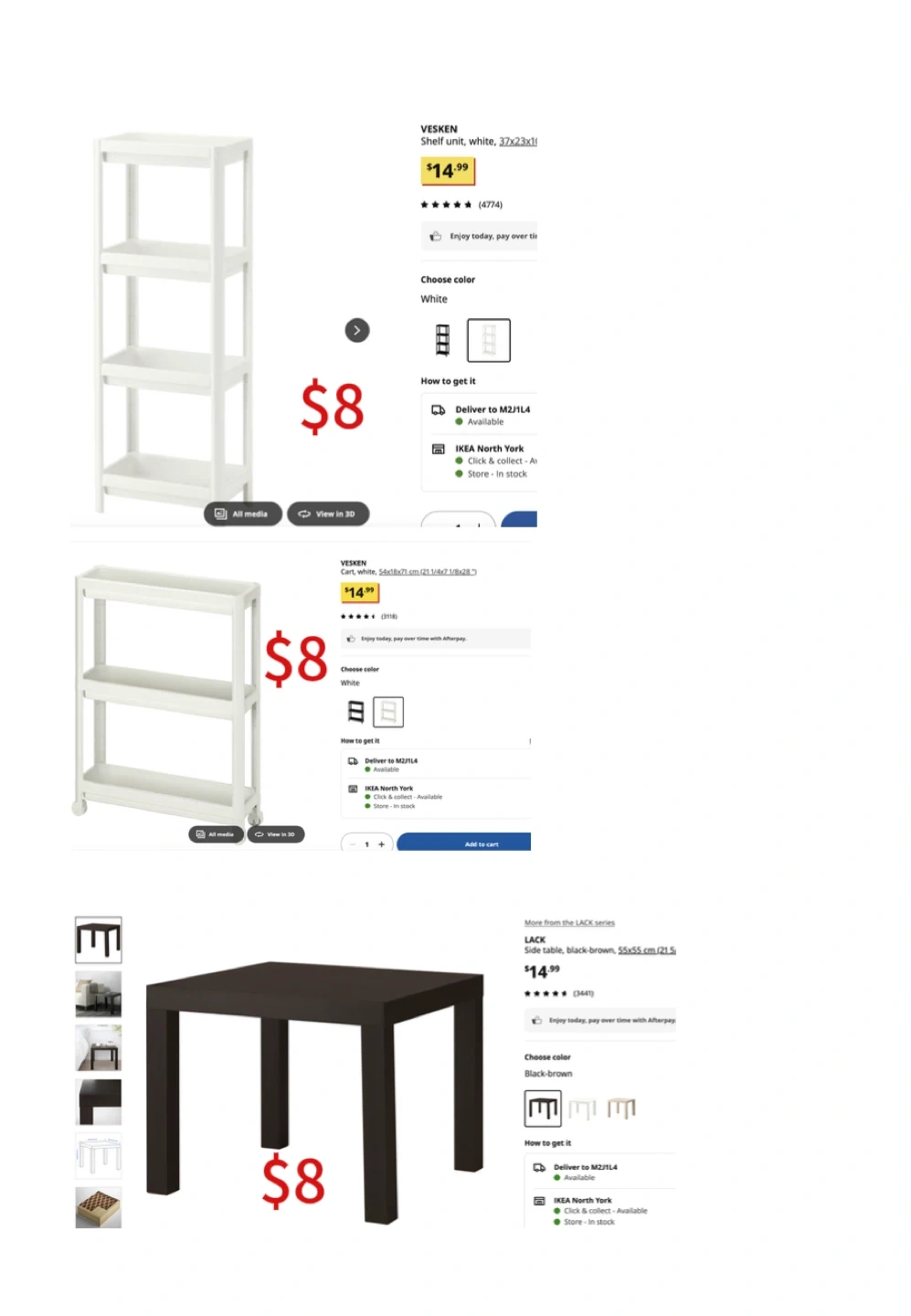 * Shelves: $8 each