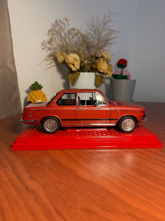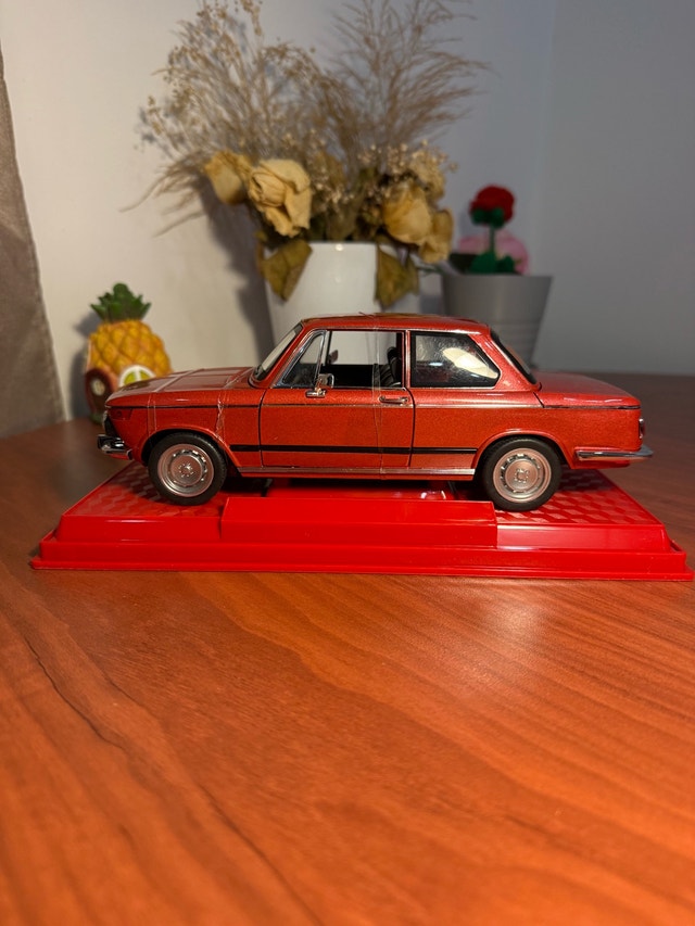 Selling a beautiful scale model of the iconic BMW 2002 in a bright orange finish. This is a detailed collectible perfect for car enthusiasts, collectors, or as a stylish desk/display decoration. Model: BMW 2002 classic. Color: Orange. Condition: Excellent – well kept and clean. Includes display base. Highly detailed interior and exterior. Great for collectors of classic cars or anyone who appreciates vintage BMW designs. Pickup: Near Mavis & Eglinton, Mississauga.