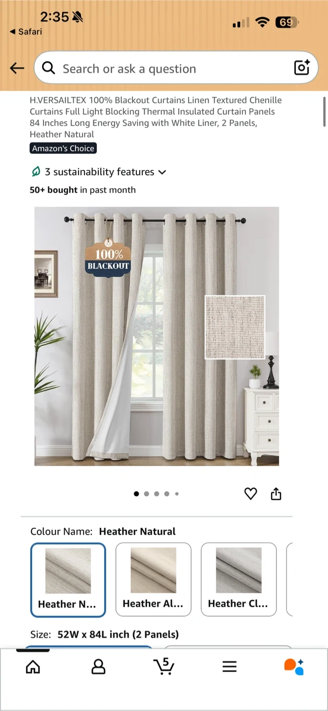 These H.VERSAILTEX blackout chenille curtains are 100% linen textured. They're 84 inches long and energy-saving. Each panel is fully insulated for thermal blocking. Includes 2 panels in Heather Natural.