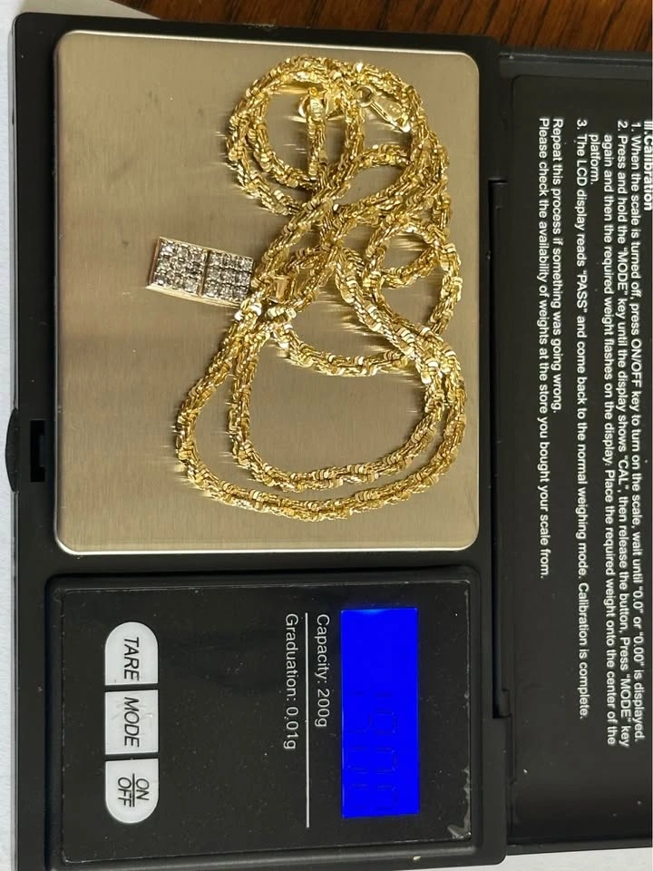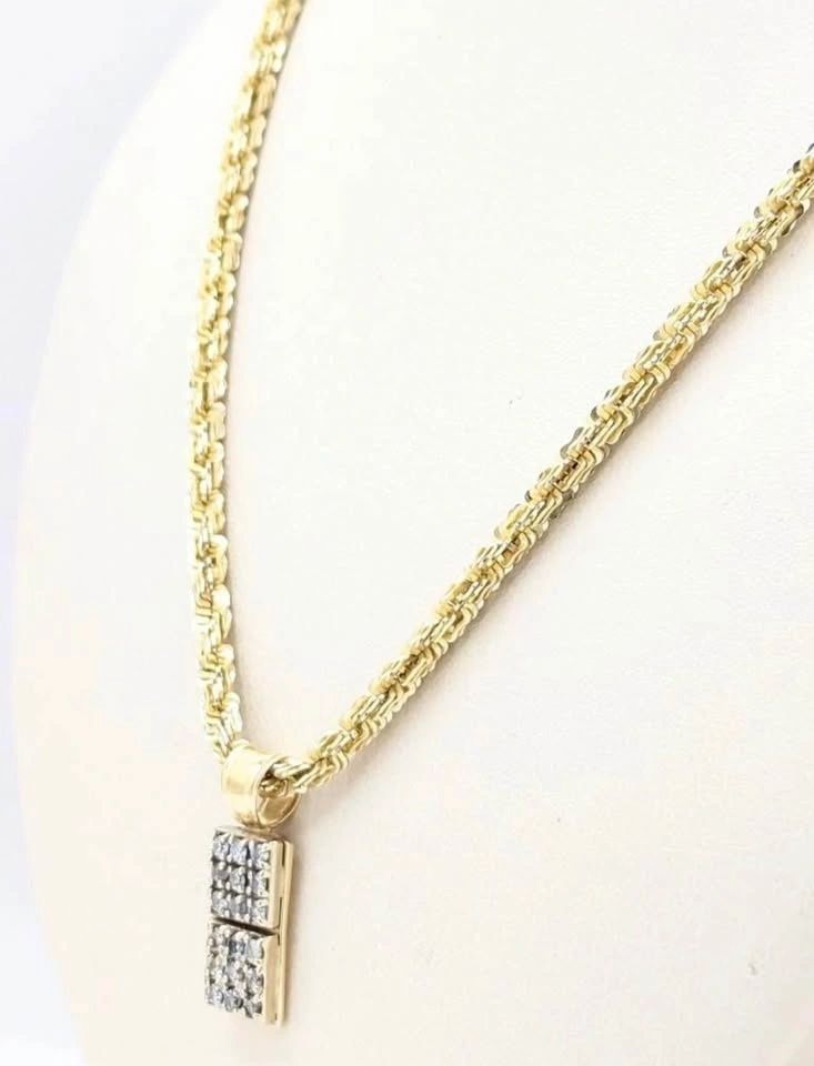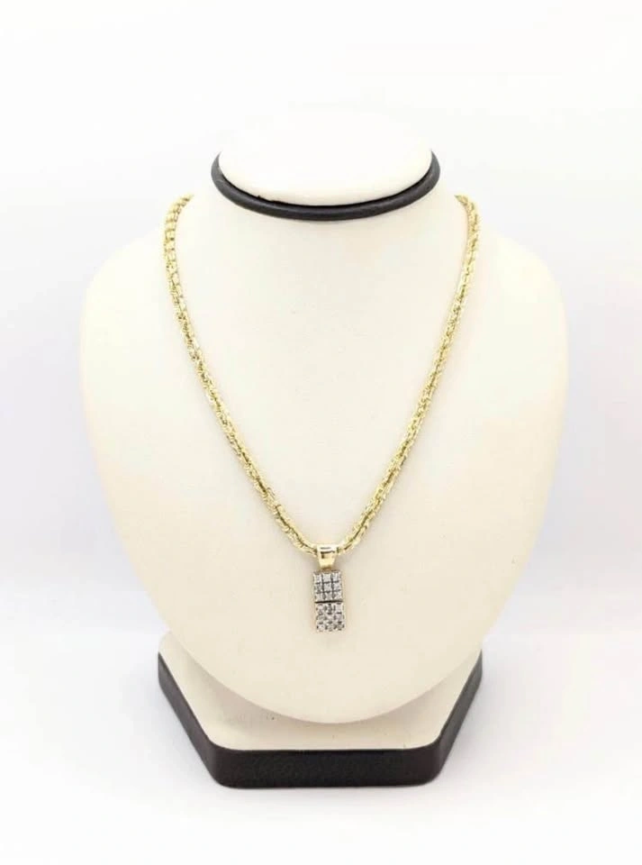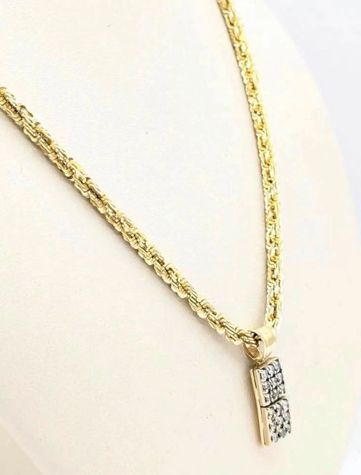 Testing the waters. Rare square cut diamond rope chain with diamond pendant. Weight is 19 grams. Length is 22 inches.