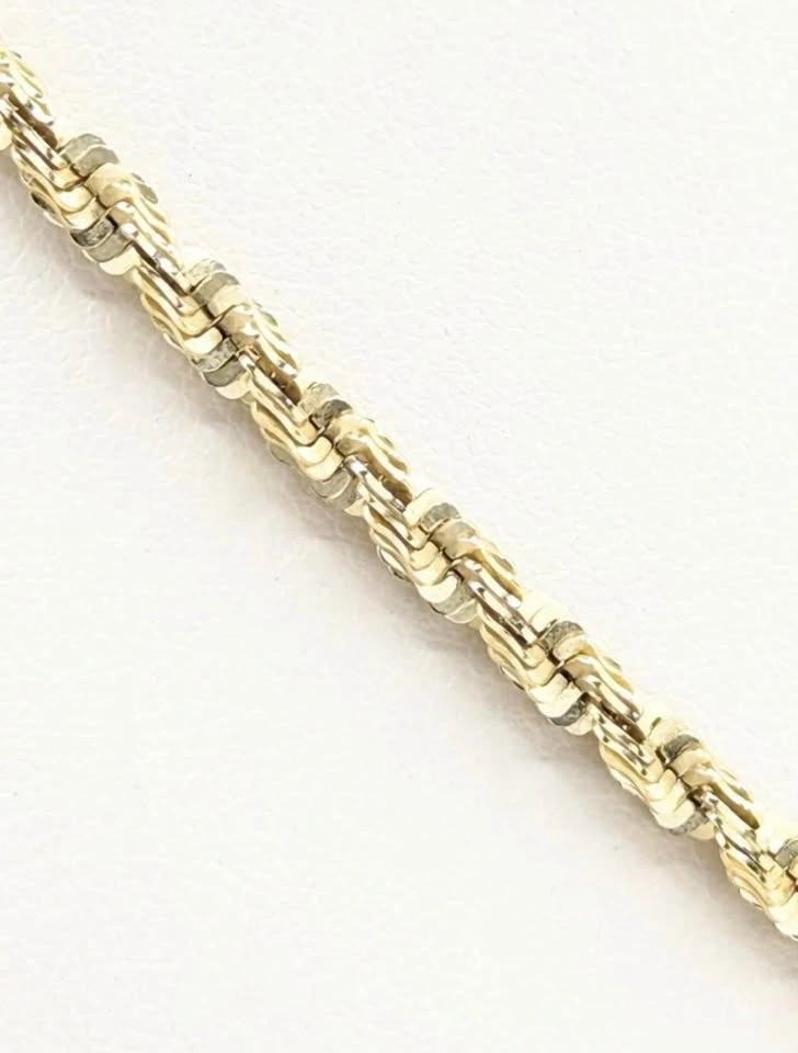 14K Yellow Gold 3mm 19G Diamond Pendant Rope Chain Necklace