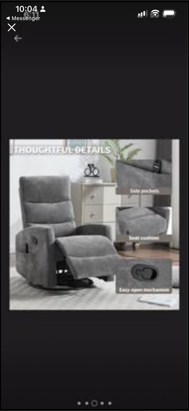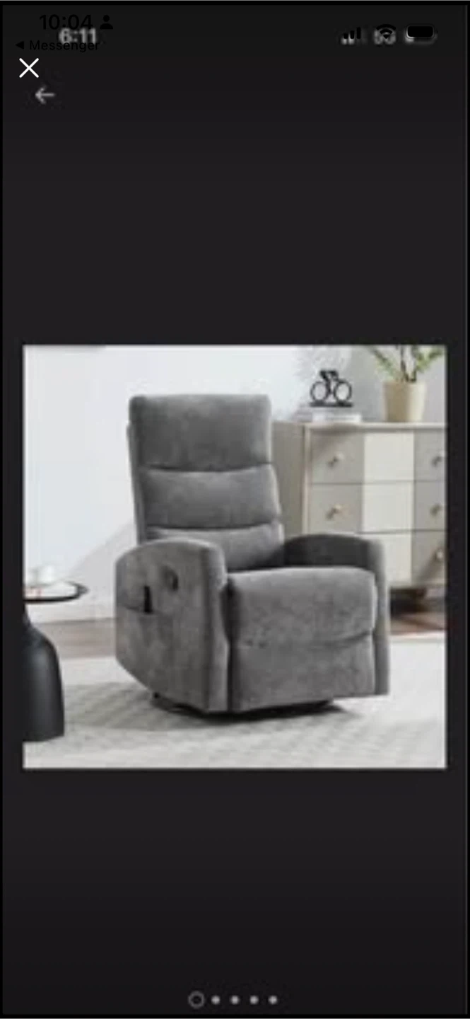 New Selling a comfy grey rocker recliner! It features a 30° rocker, massage & heating functions, and a 360° rotatable angle. It also has side pockets and an easy-open mechanism for the seat cushion