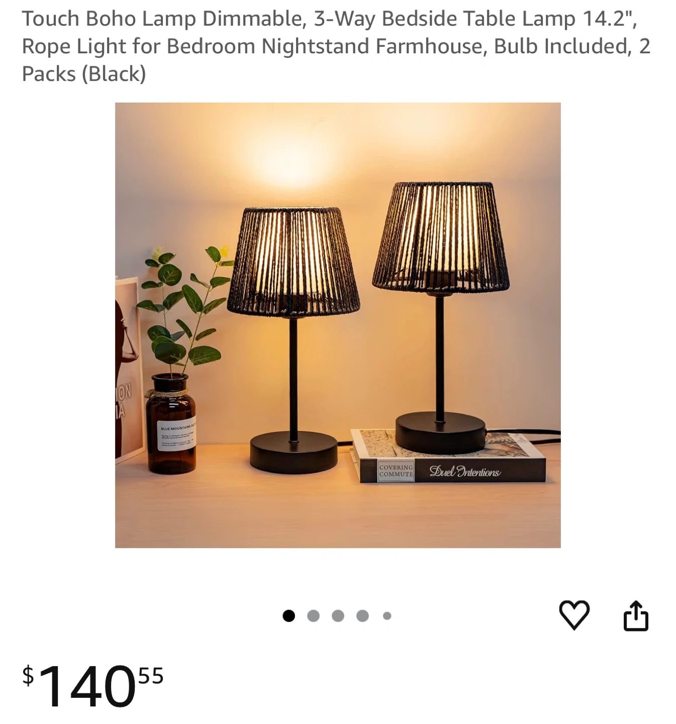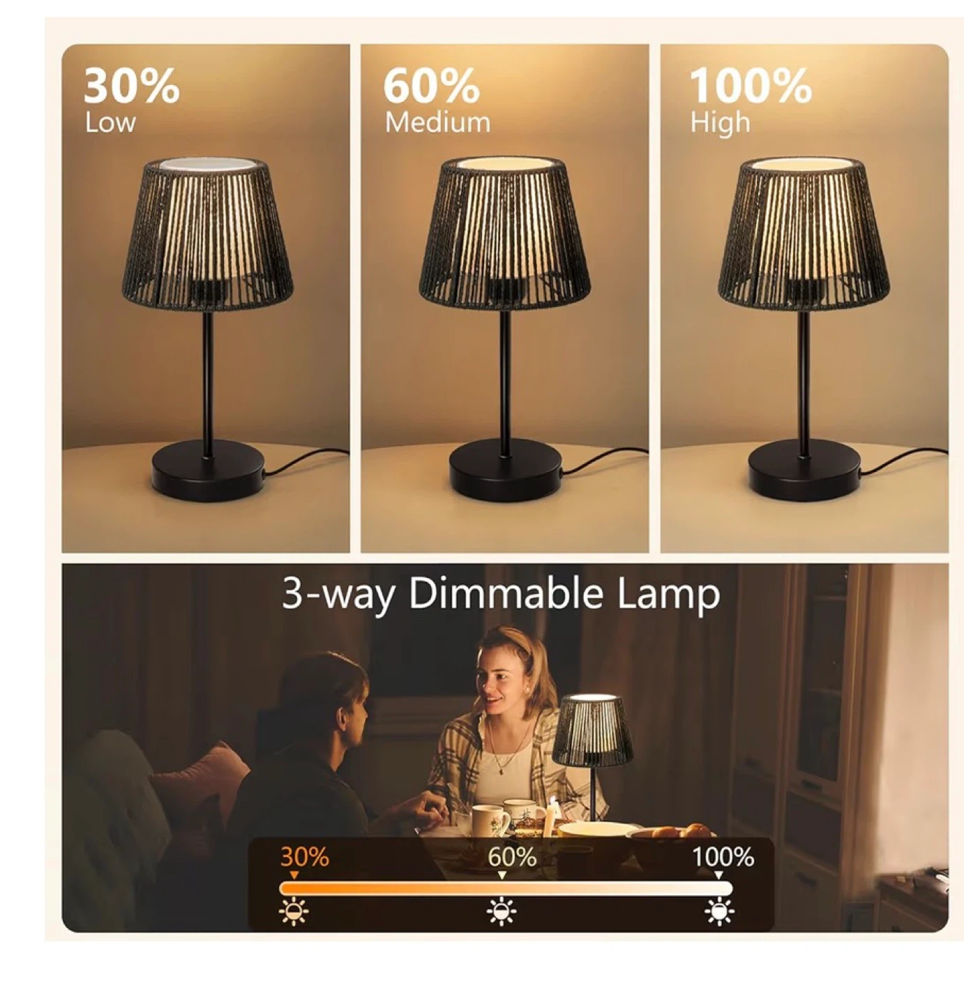 This touch-controlled bedside lamp offers 3-way dimming. It features a rattan lampshade in a bohemian style. Bulb is included! Set of 2