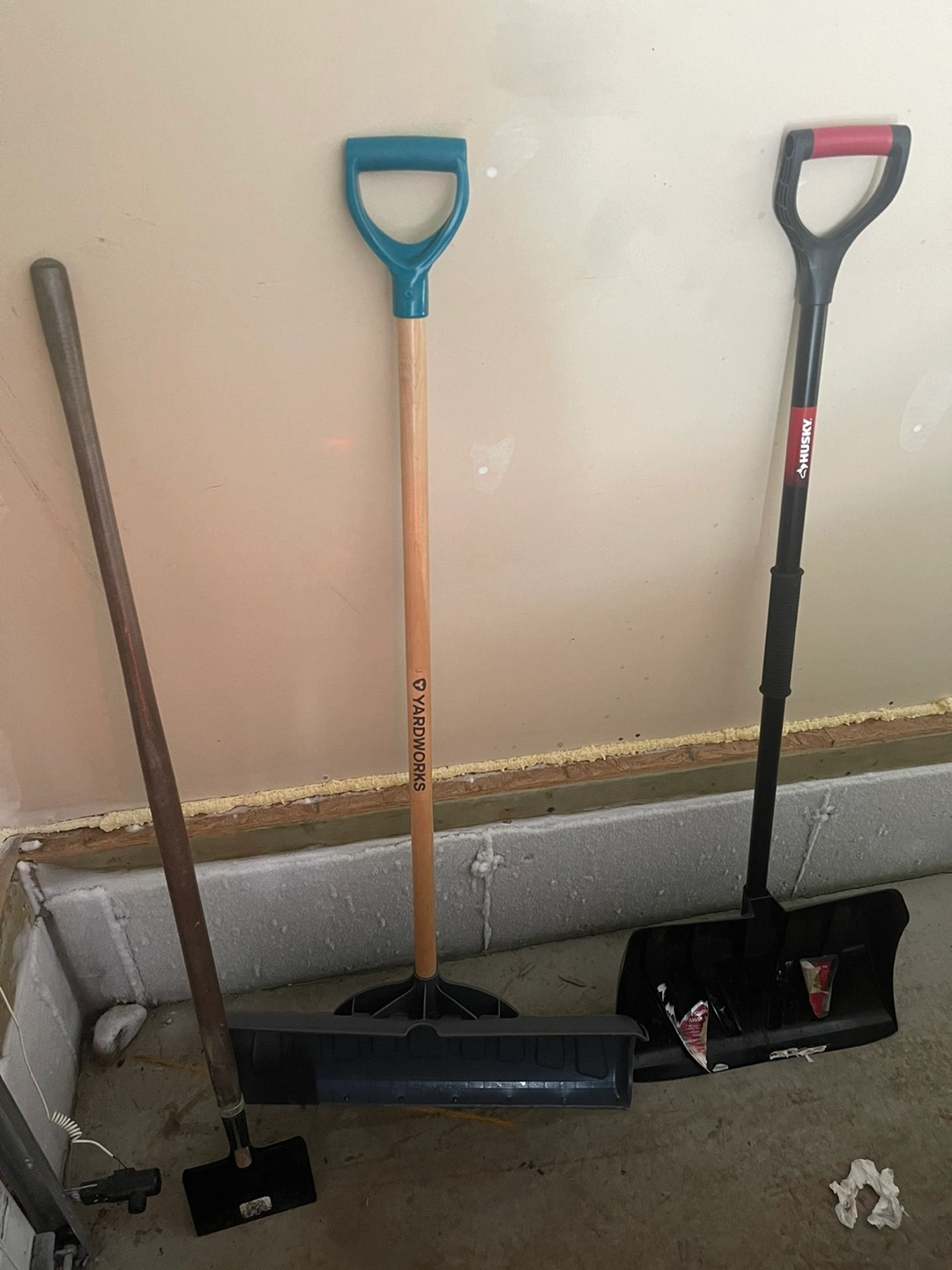 1 snow shovel, 1 ice chipper and 1 snow pusher.