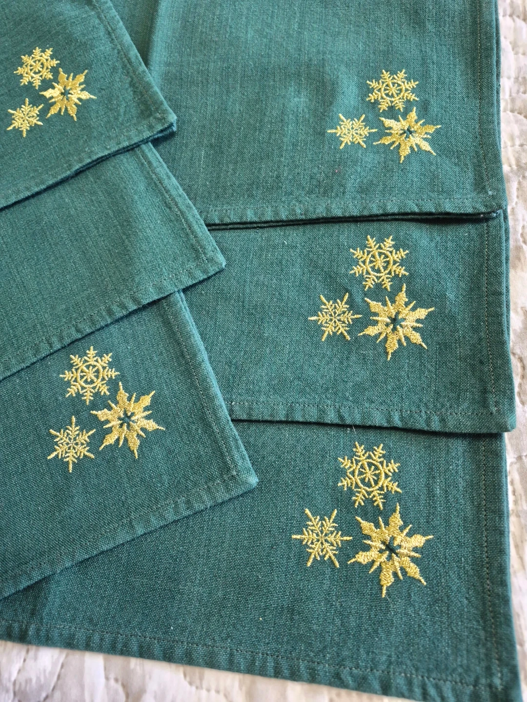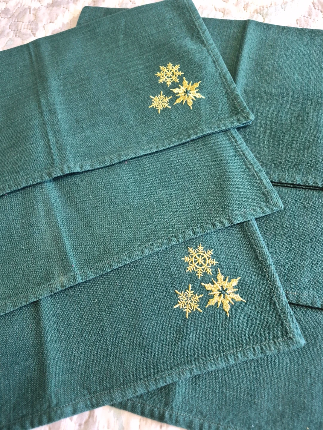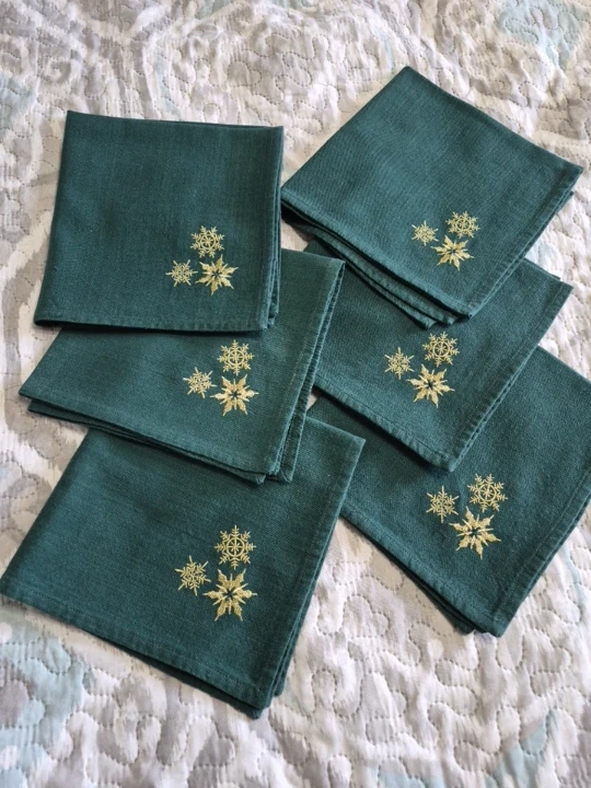 Green Embroidered Snowflake Cotton Napkins Set Of 6 - 16 1/2"x 16 1/2" please see all pictures