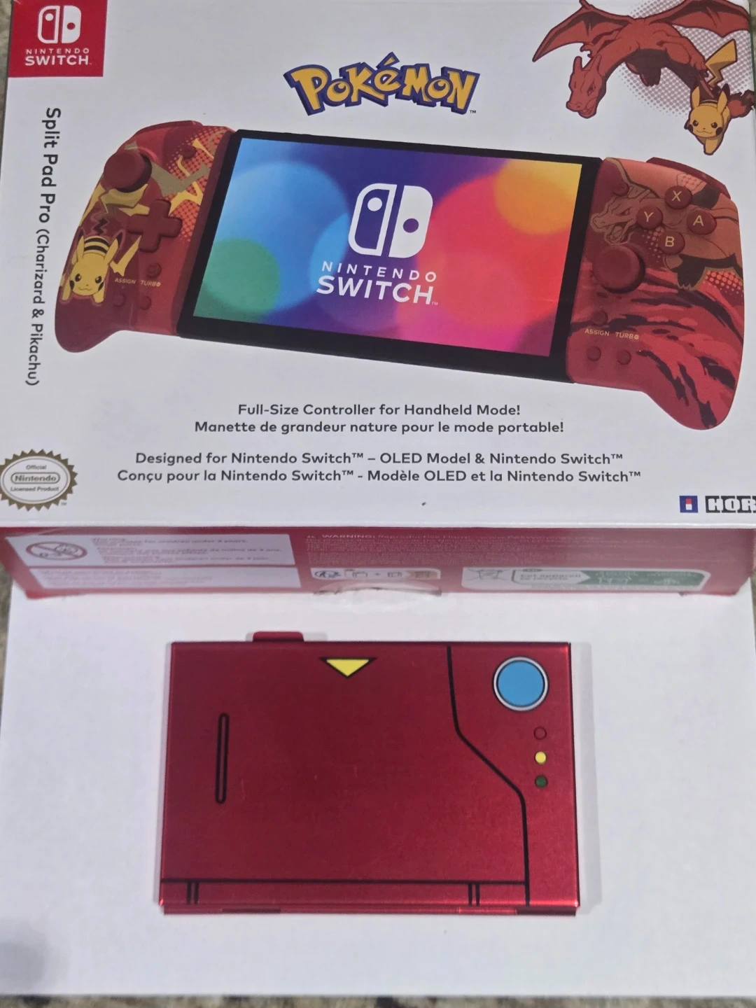 It's a full-size controller for handheld mode, designed for Nintendo Switch OLED and standard models. The controller features a Charizard and Pikachu Pokémon theme. Includes turbo assignment functions!