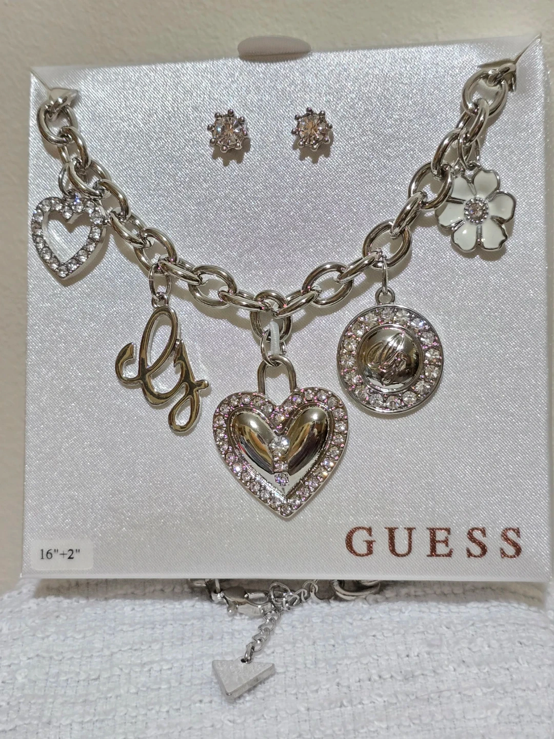 Guess Charm Necklace and Earrings Set