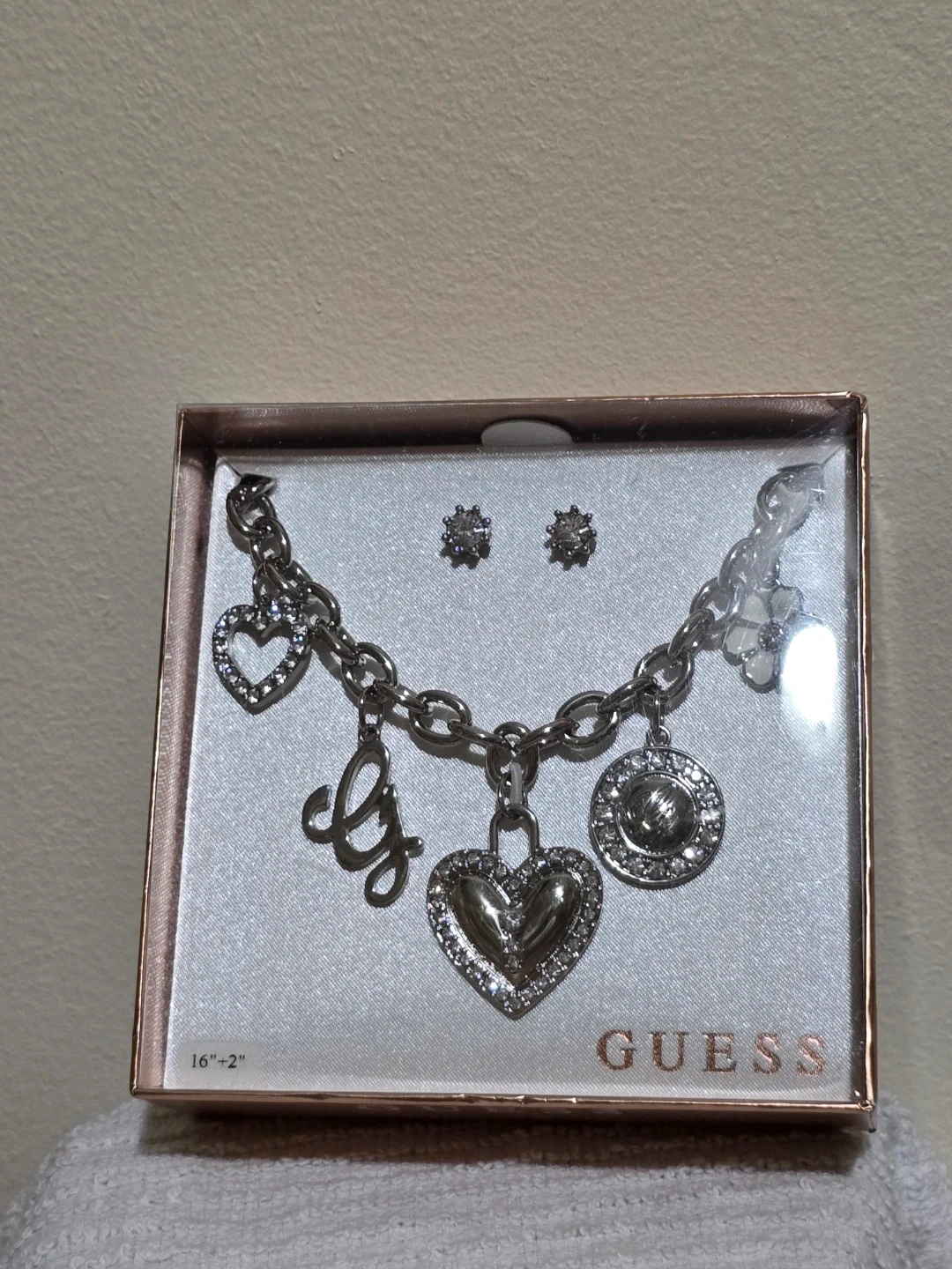 Guess Charm Necklace and Earrings Set