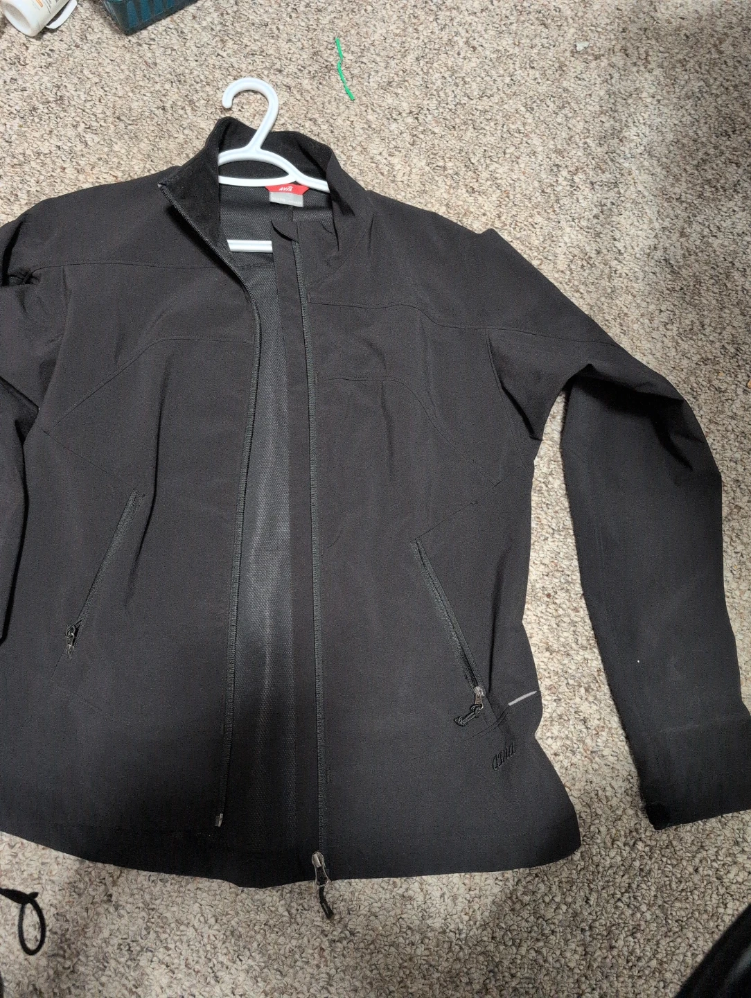 Black Avia softshell jacket with zippered pockets. It's a XL size. Great for keeping warm outdoors!