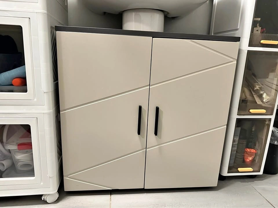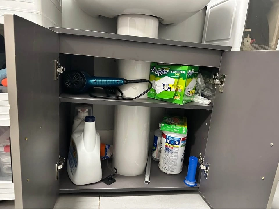 Undersink Vanity Cabinet - for round sink stems. I had to shave a tiny portion of the opening to fit the sink that I had.