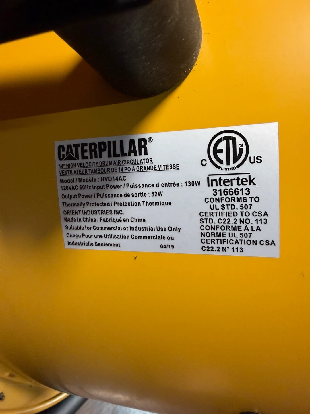 I'm selling a CATERPILLAR HVD-14AC 14-in High Velocity Drum Air Circulator Fan, perfect for cooling larger spaces with its powerful airflow.