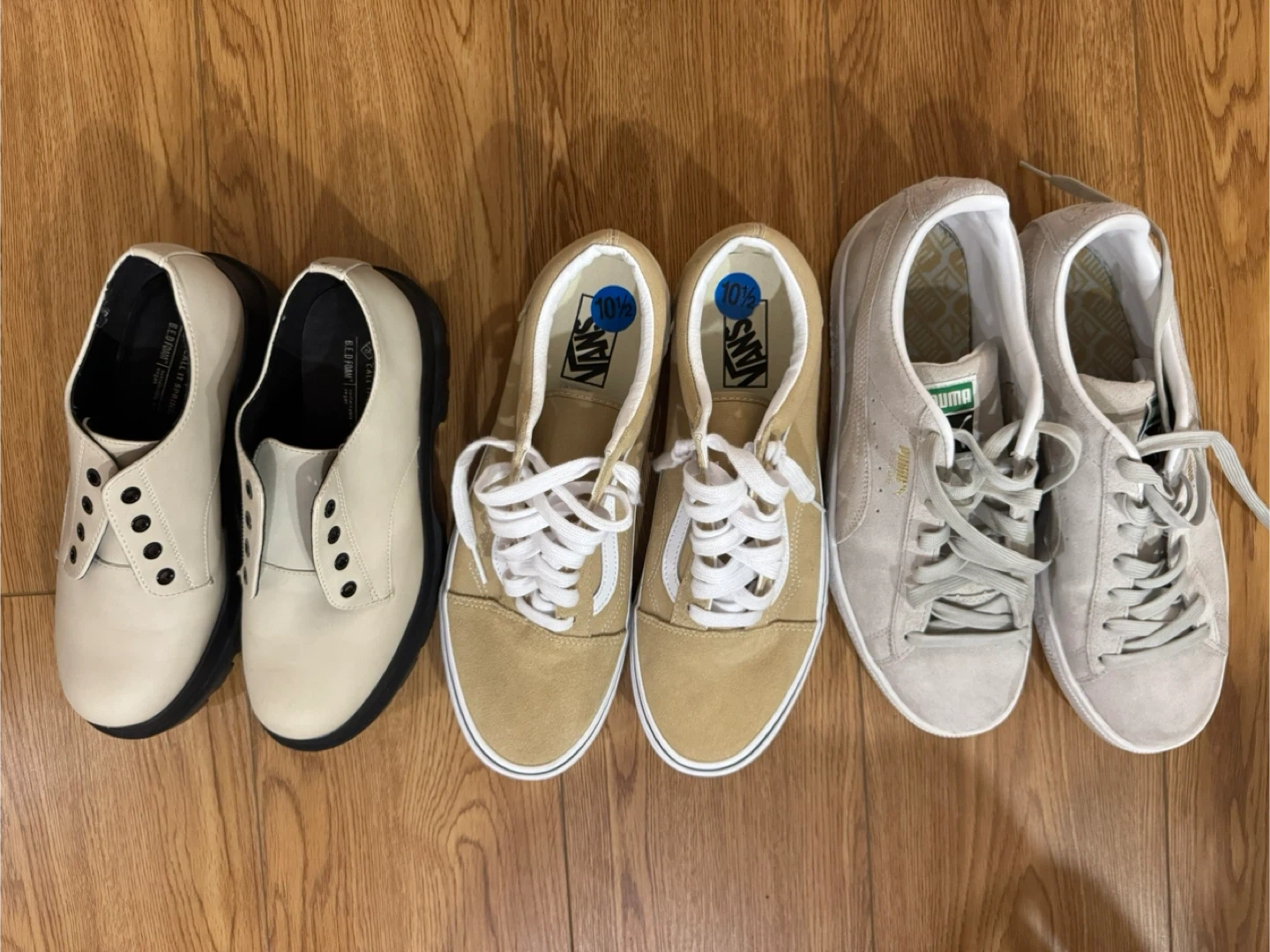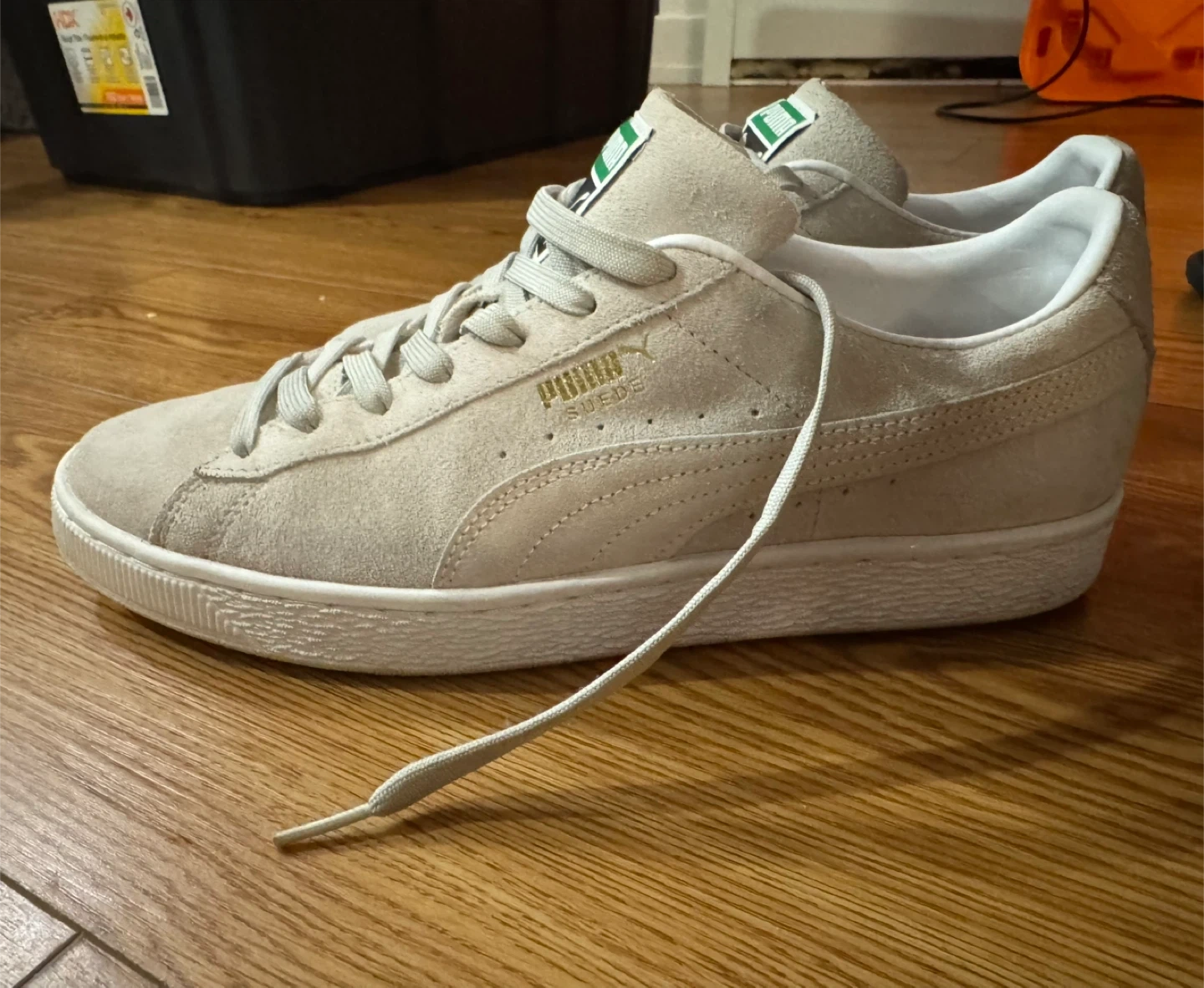 -Puma Suede Classic shoes,beige color. These are size 10 1/2, slightly worn,man.
