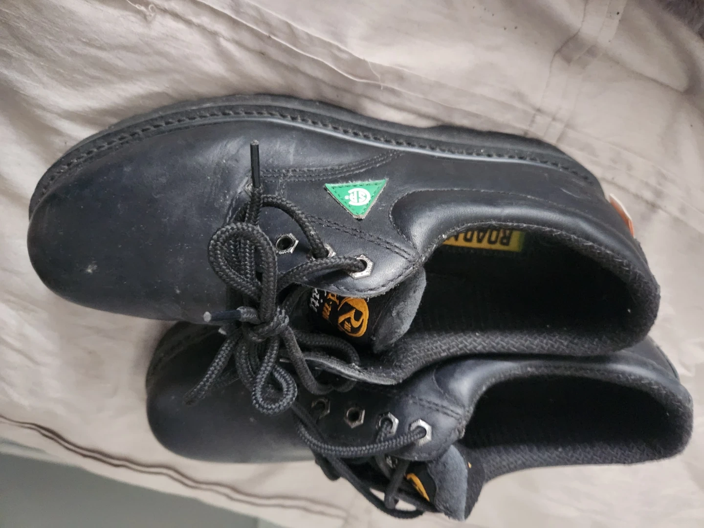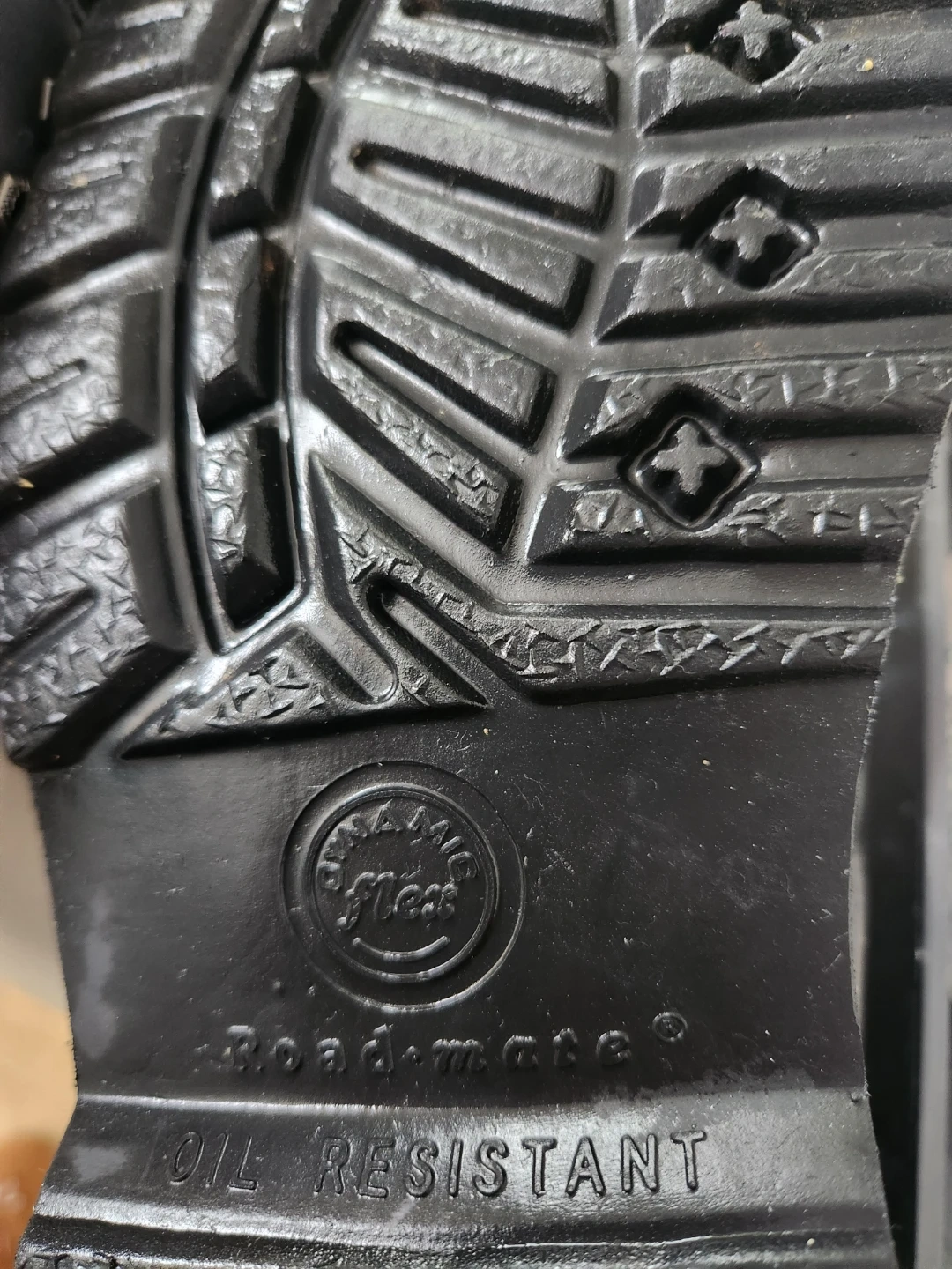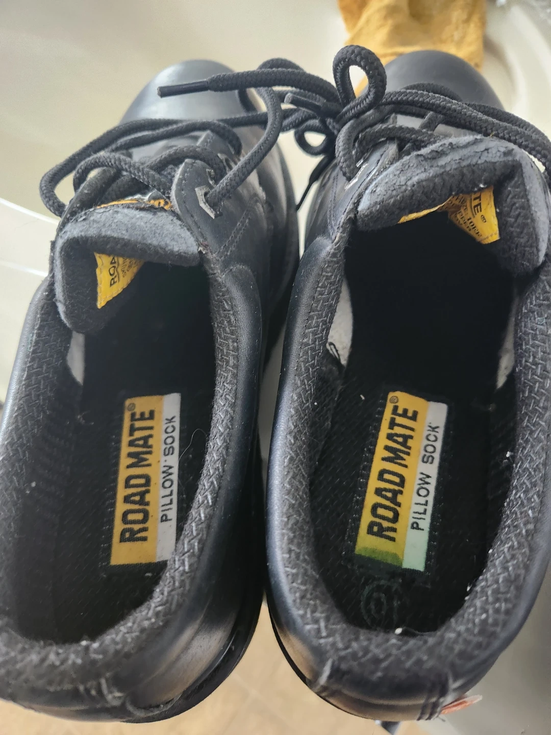 Road Mate men's work shoes. Genuine leather upper in black. Size 10EE with pillow sock for comfort. Oil resistant soles.