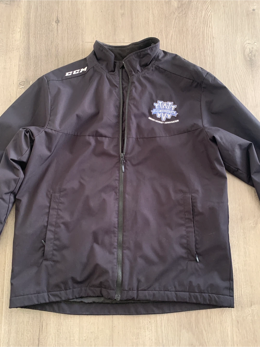 Selling a CCM jacket with the West Vancouver Minor Hockey Association logo. It's a size M. Perfect for staying warm at the rink! Including a Thunders hockey shirt size S.