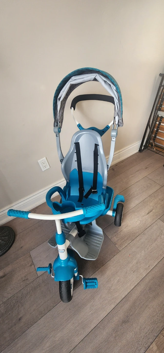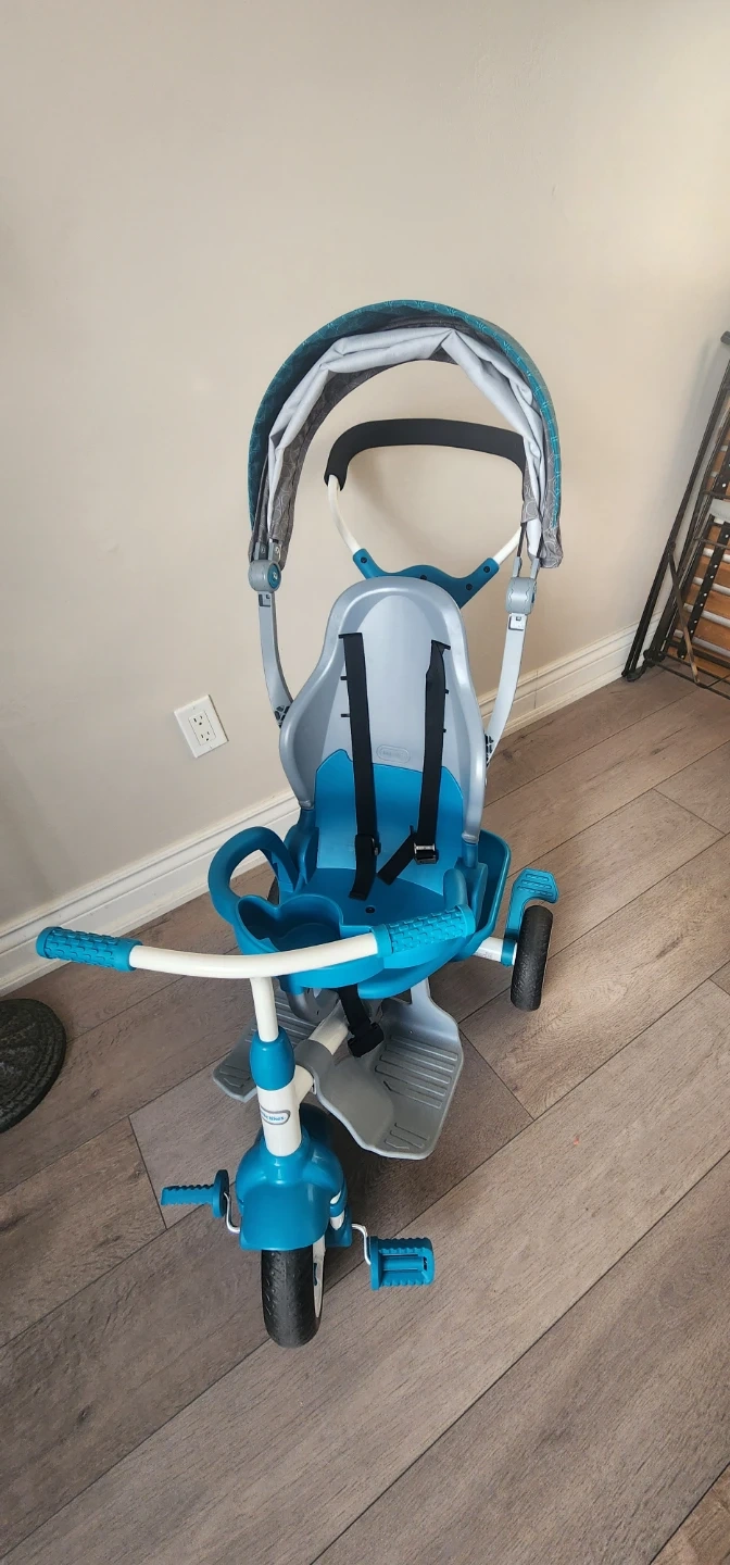 Zoom into fun with this gently used blue trike, perfect for toddlers exploring the world on three wheels! It's in good condition and ready for new adventures. Features include a sturdy frame for safety, easy-grip handlebars, and a comfortable seat. This trike is great for making memories and getting some fresh air. If the ad's up, the trike's ready to roll!