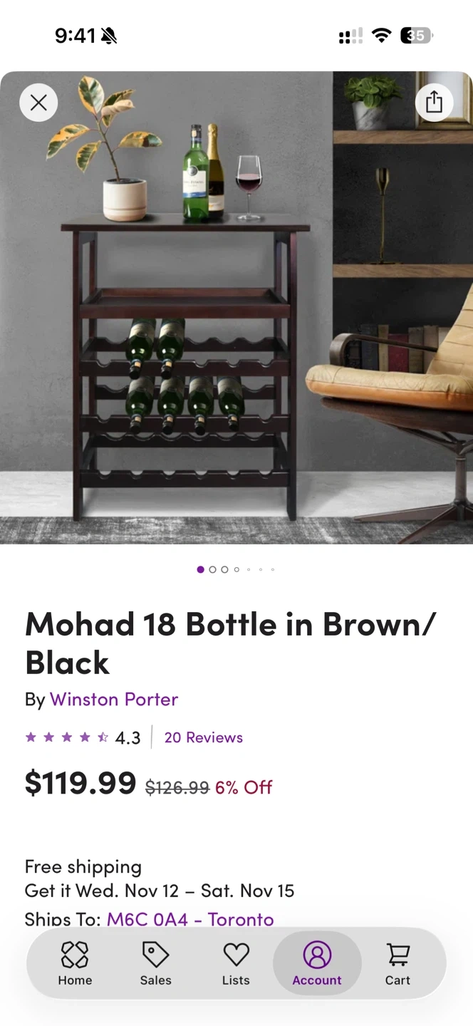 This is a Mohad 18 bottle wine rack in a brown/black finish. It features multiple shelves for wine bottles and a top surface for display. It's made of wood. Perfect for organizing your wine collection!